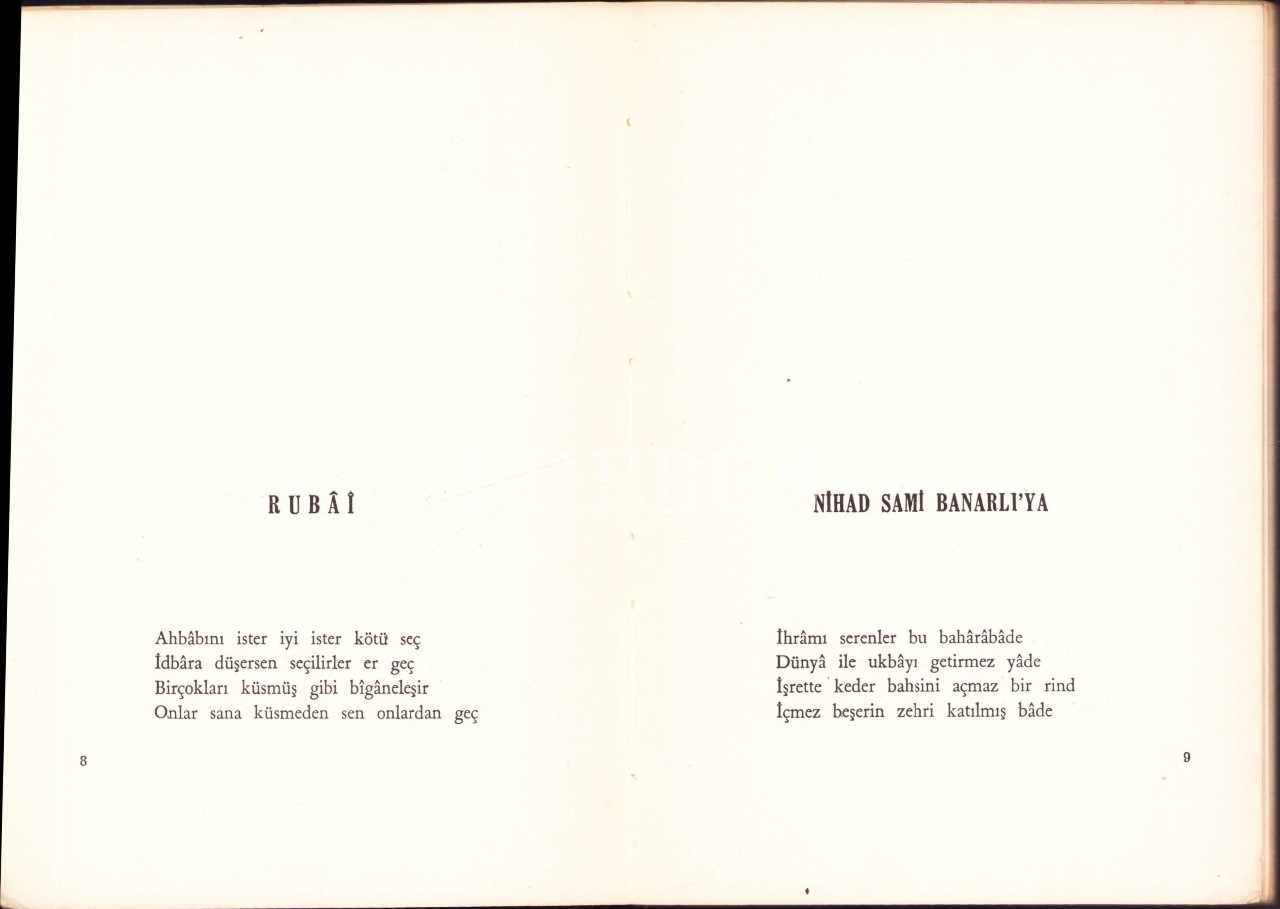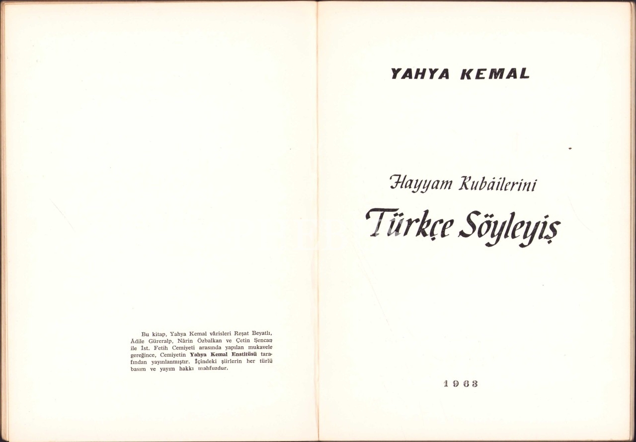 Rubâîler, Yahya Kemal, Yahya Kemal Enstitüsü, 1963, 60 s., 14x19 cm, yorgun haliyle