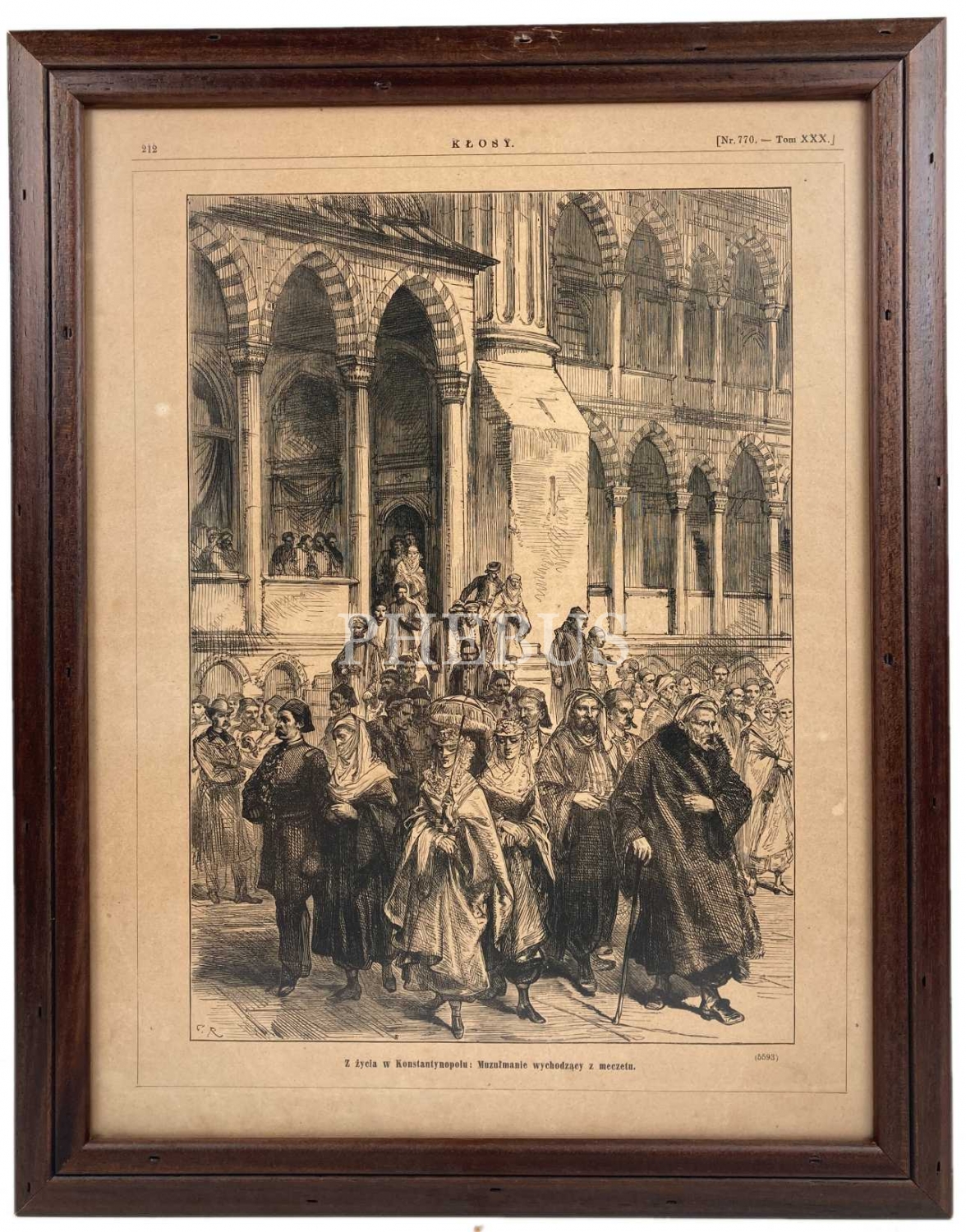 Klosy dergisinden çıkma "Konstantinopolis'te Yaşam" konulu gravür, çerçeveli, çerçeve: 33x42 cm