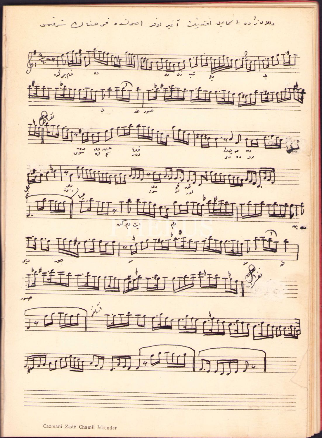 Osmanlıca Nota Defteri-Ferahnak Faslı, Kudmanizade Şamlı İskender, İstanbul, 20x27 cm, kapak sırtı yıpranmış haliyle