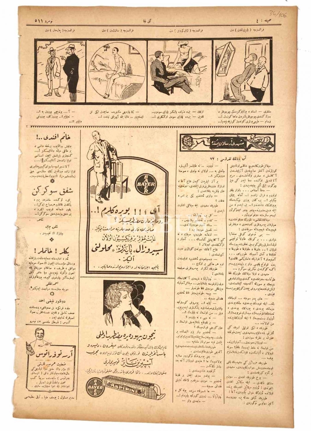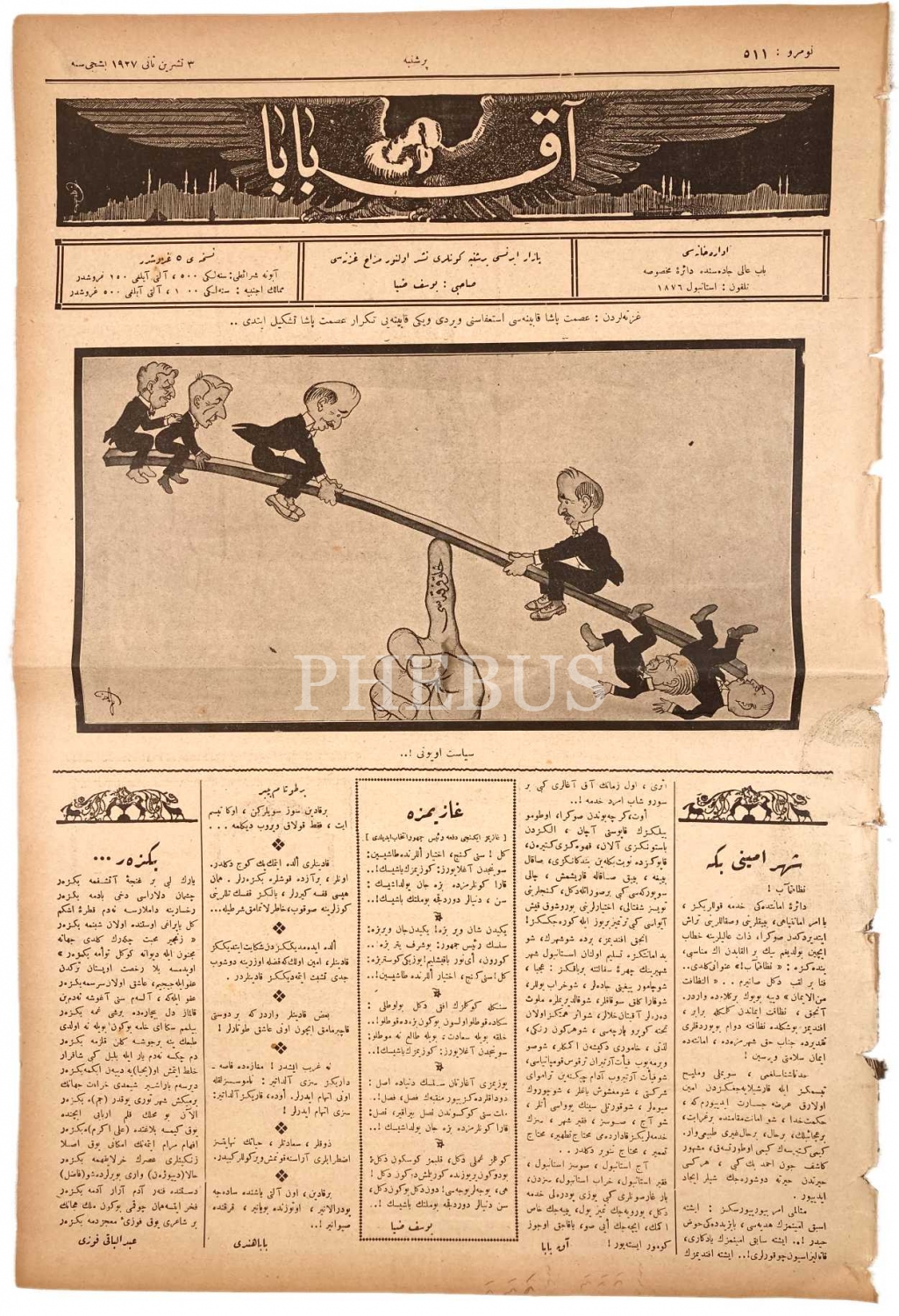 Osmanlıca Akbaba dergisi, 511. sayı, 3 Teşrinisani 1927, 4 sayfa, 30x45 cm, bir kenarı yıpranmış haliyle