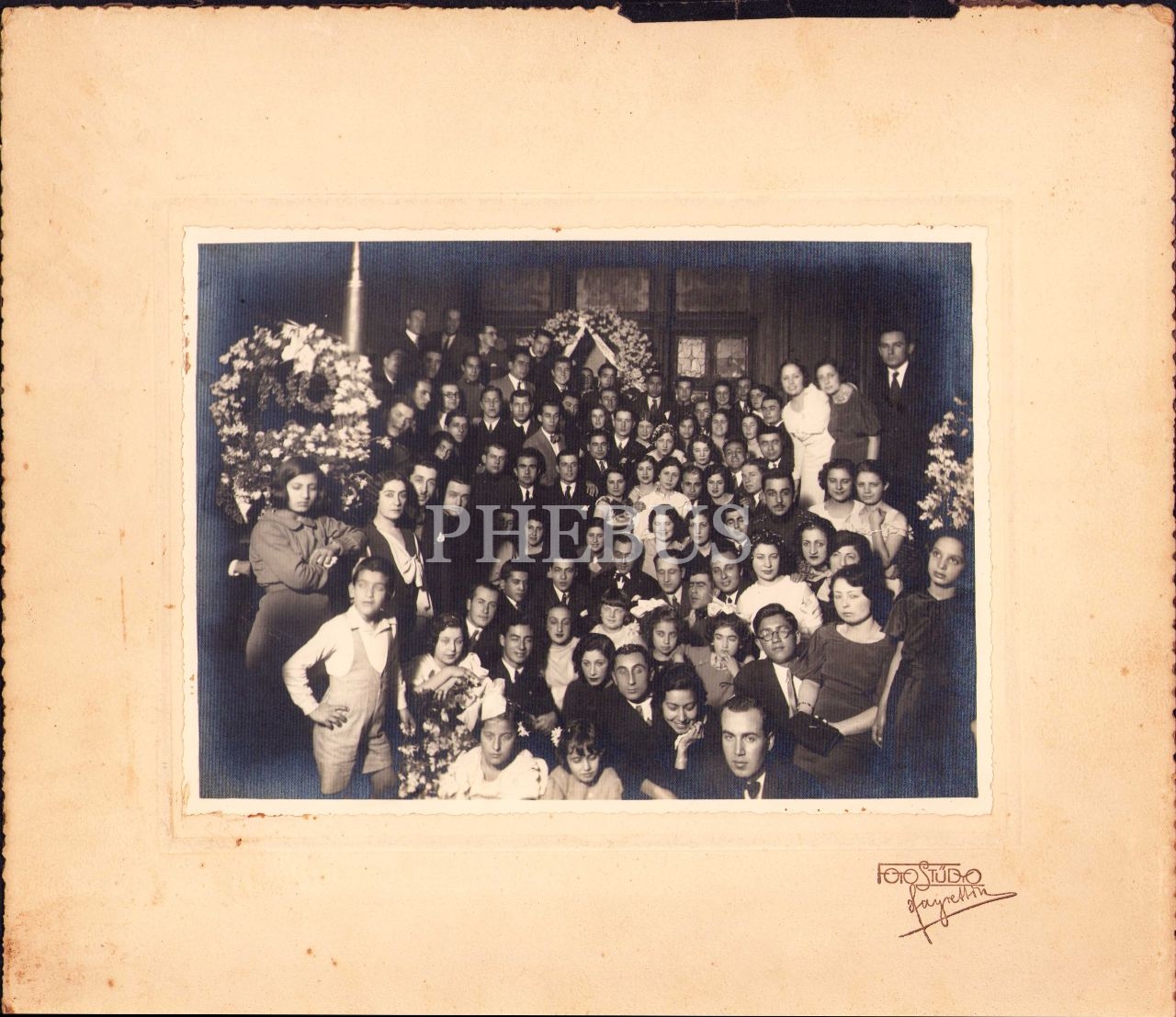 Düğün hatıra fotoğrafı, Foto Stüdio Hayrettin damgalı, paspartulu, foto: 17x23 cm, paspartusu yorgun haliyle