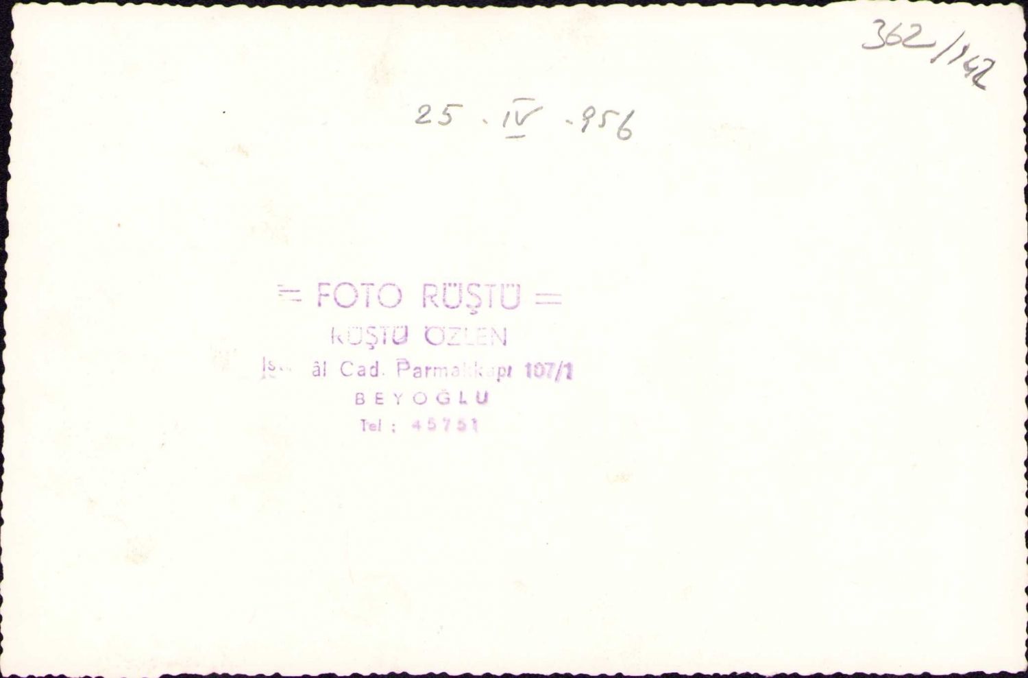 Topluluk hatıra fotoğrafı, Foto Rüştü-Beyoğlu/İstanbul, 1956 tarihli, 11x17 cm