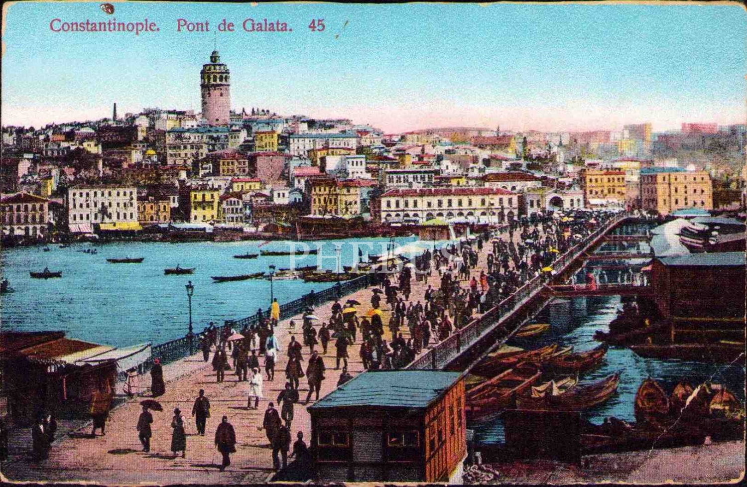 Galata Köprüsü, Constantinople, ed. J.M.F., kenarları soyulmuş haliyle