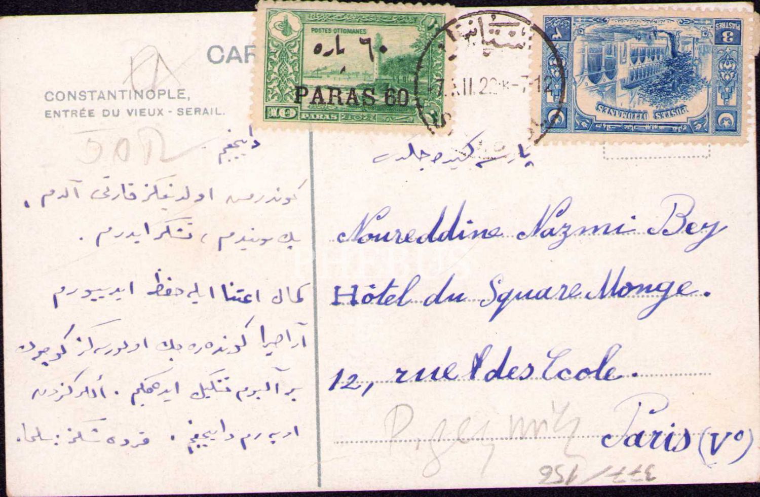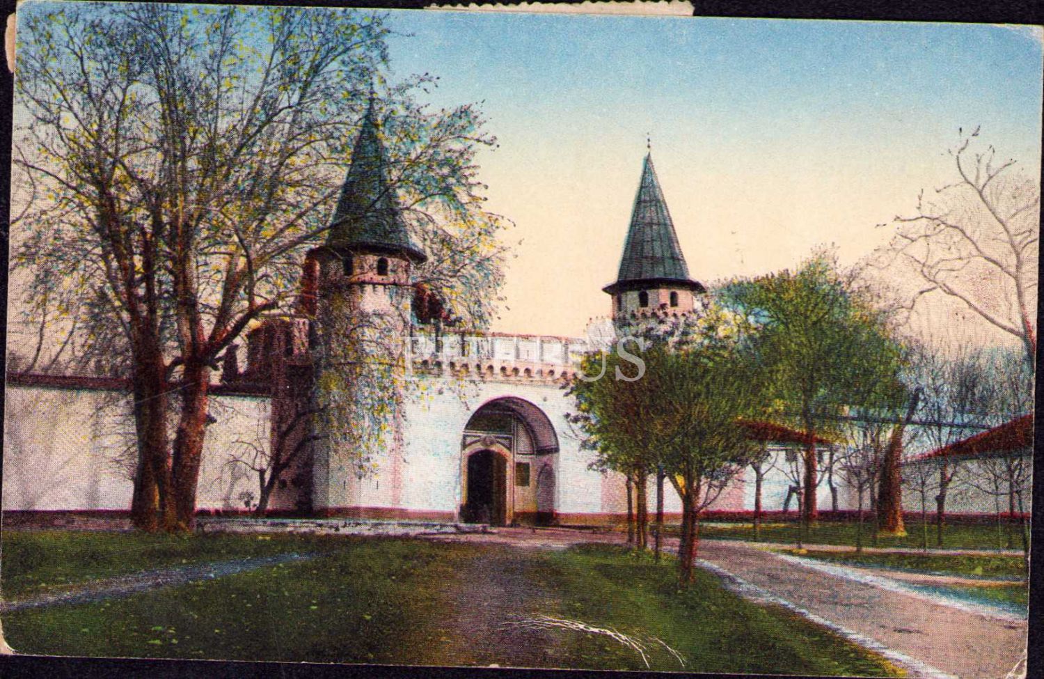 Topkapı Sarayı girişi, Constantinople, arkası Osmanlıca yazılı
