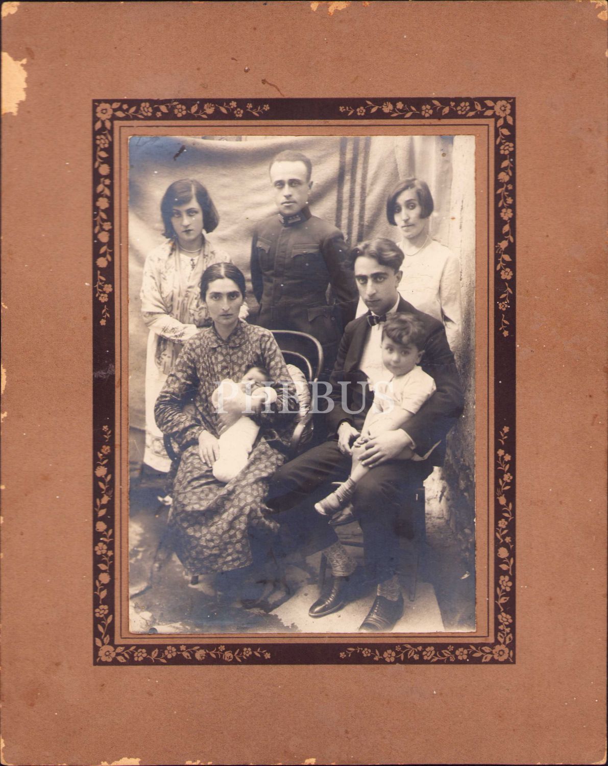 Aile hatıra fotoğrafı, paspartulu, foto: 12x17 cm, fotoğraf ve paspartusu yıpranmış haliyle