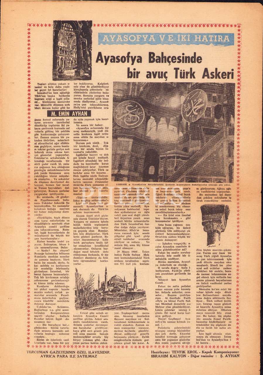 Tercüman gazetesinin özel eki: Ayasofya, haz. Tevfik Erol, 29x42 cm, bir kenarı yırtık haliyle