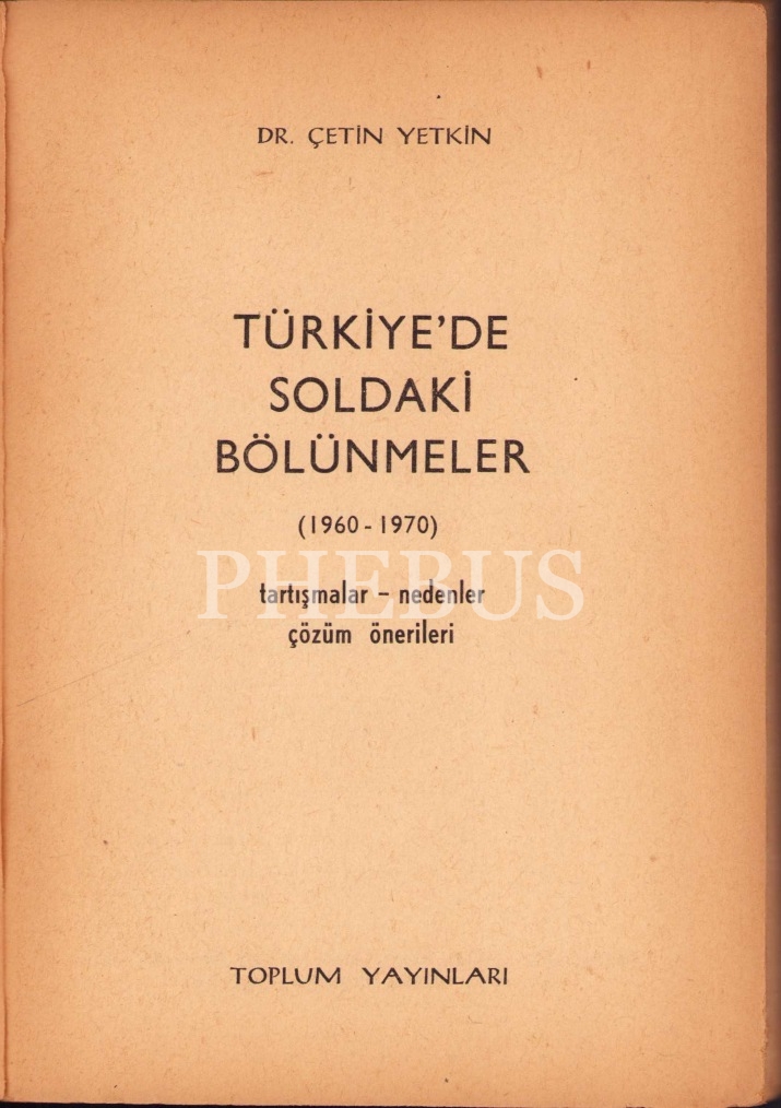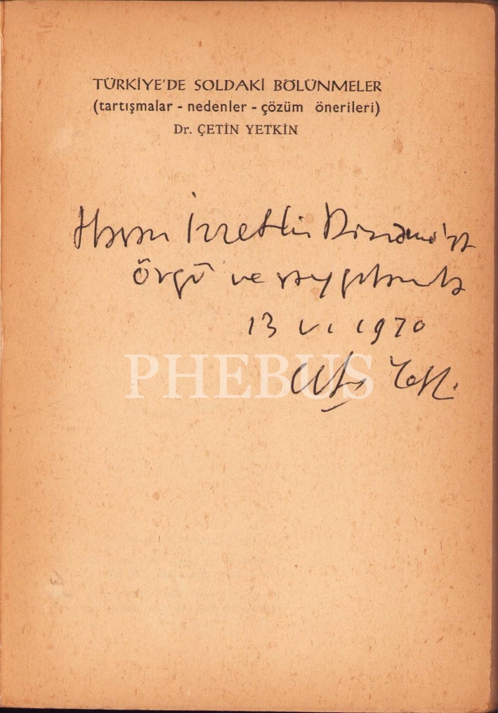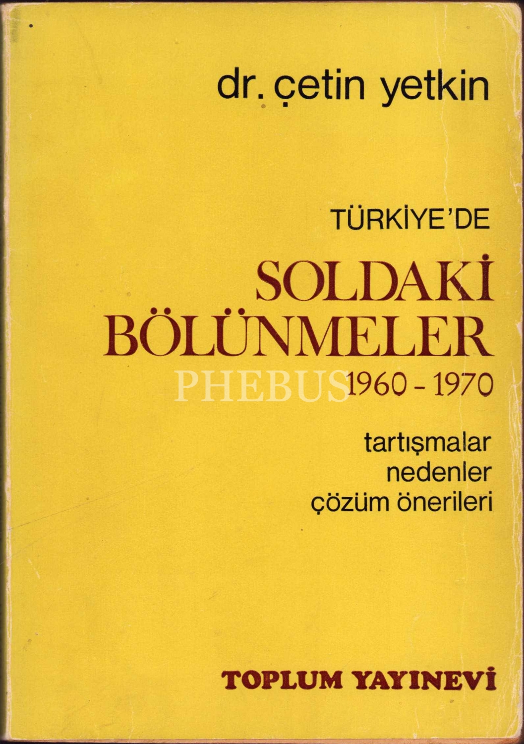 Türkiye'de Soldaki Bölünmeler (1960-1970), Çetin Yetkin, yazarından ithaflı ve imzalı, Toplum Yayınevi, İstanbul 1970, 266 s., 13x19 cm, yorgun ve künye sayfası yırtık haliyle