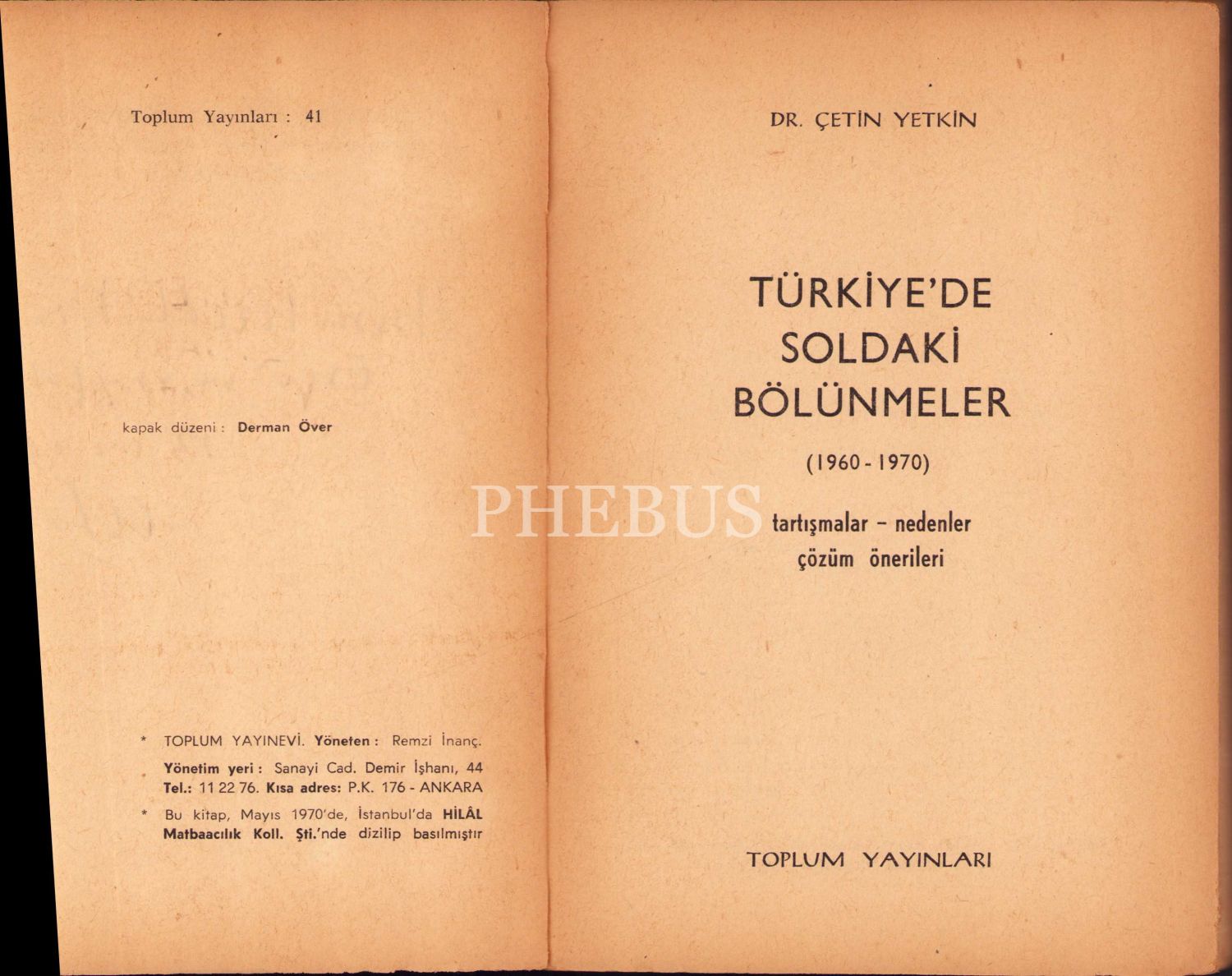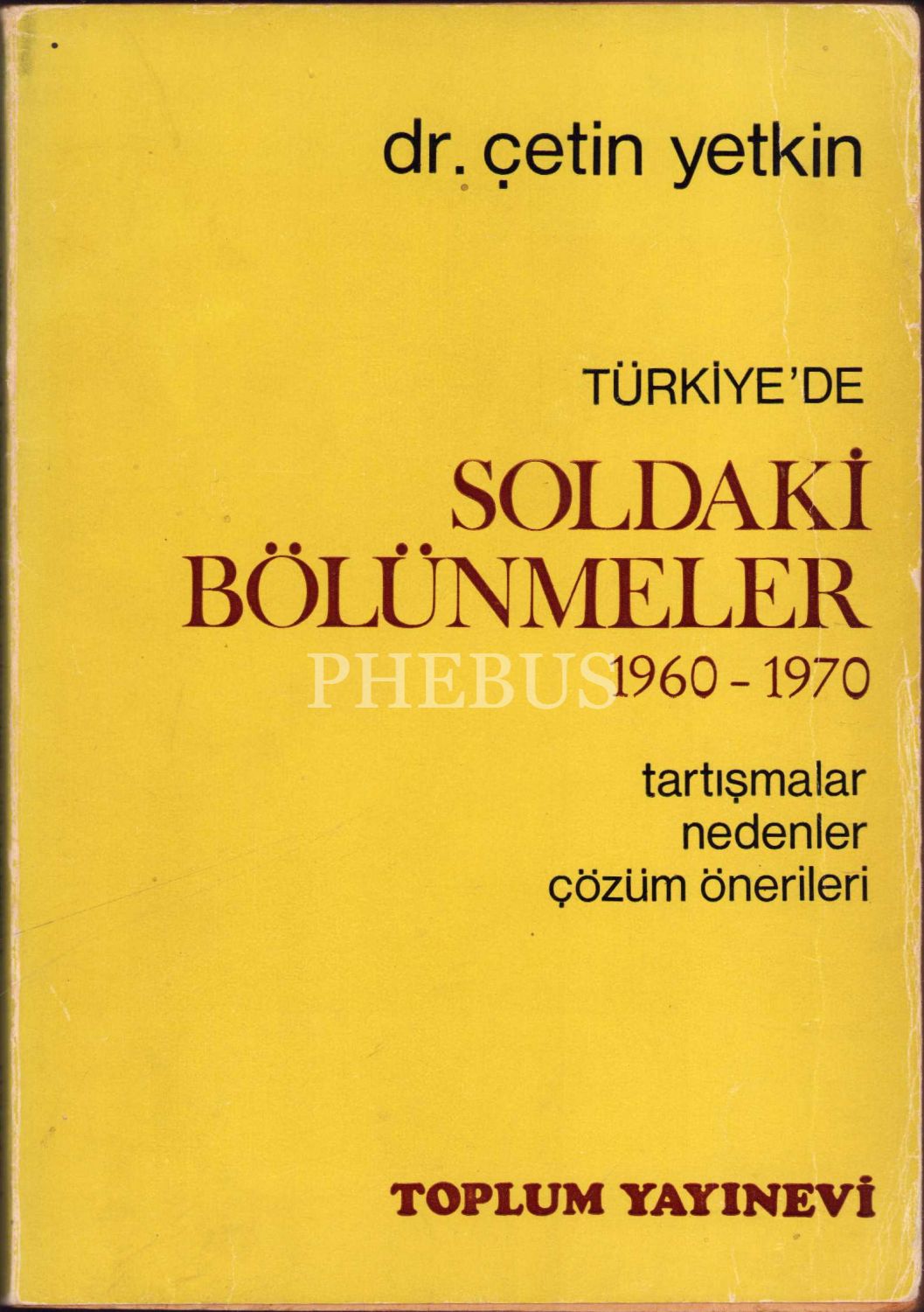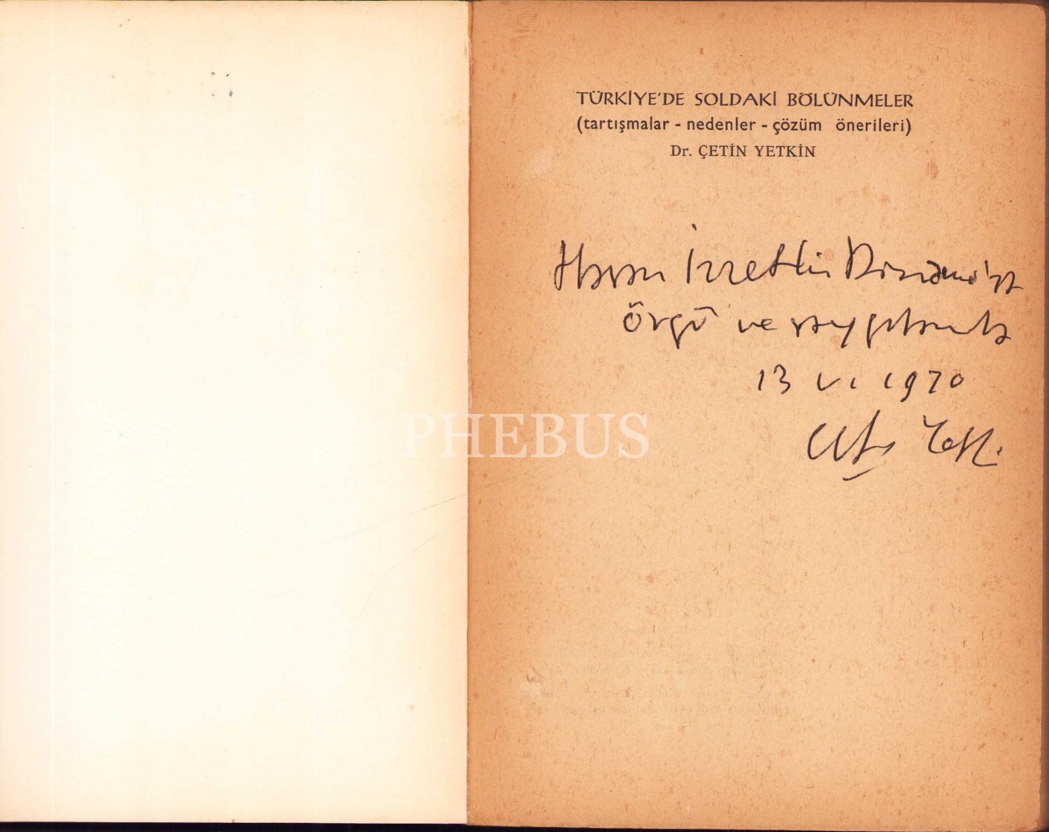 Türkiye'de Soldaki Bölünmeler (1960-1970), Çetin Yetkin, yazarından ithaflı ve imzalı, Toplum Yayınevi, İstanbul 1970, 266 s., 13x19 cm, yorgun ve künye sayfası yırtık haliyle