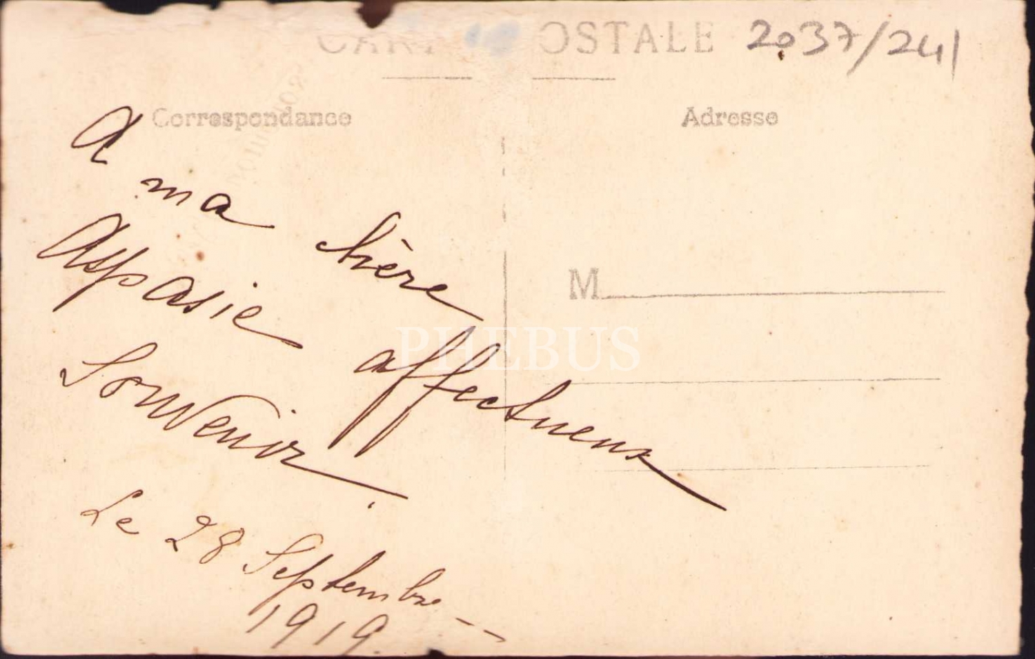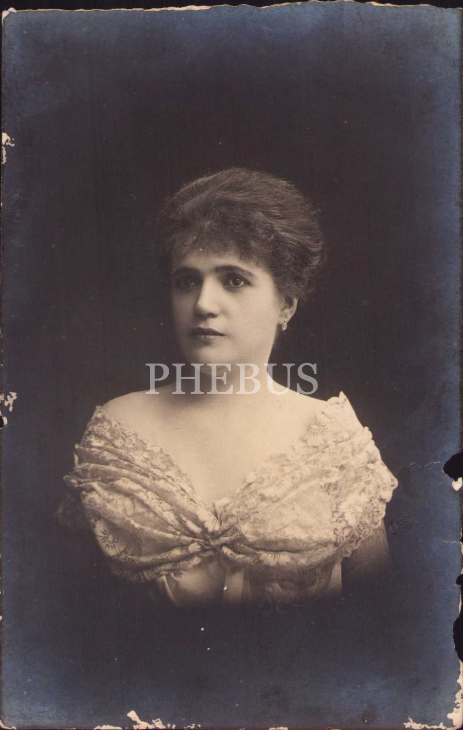 N. Andriomenos soğuk damgalı hanım fotoğrafı, arkası Fransızca yazılı, kenarları yıpranmış haliyle