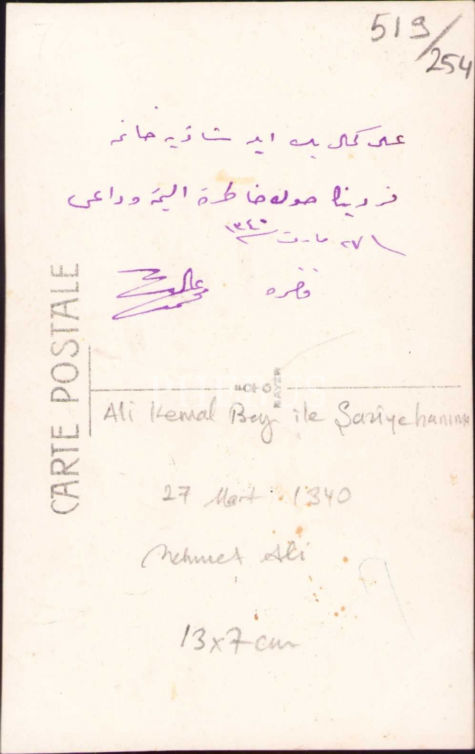 Bahriye üniformasıyla poz vermiş çocuk fotoğrafı, Osmanlıca ithaflı ve 1340 tarihli