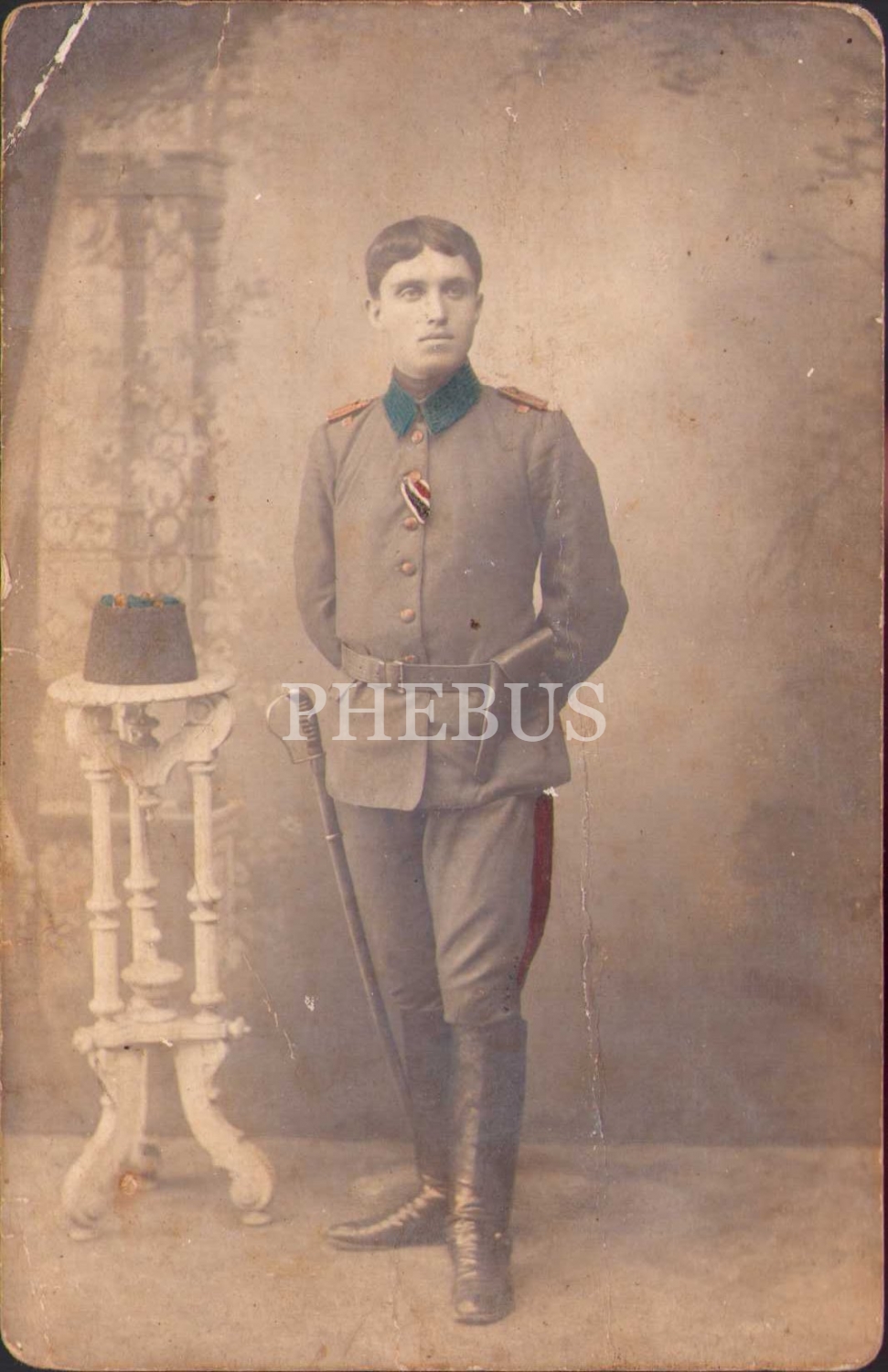 Osmanlı subay hatıra fotoğrafı, arkası Osmanlıca yazılı, epey yıpranmış haliyle