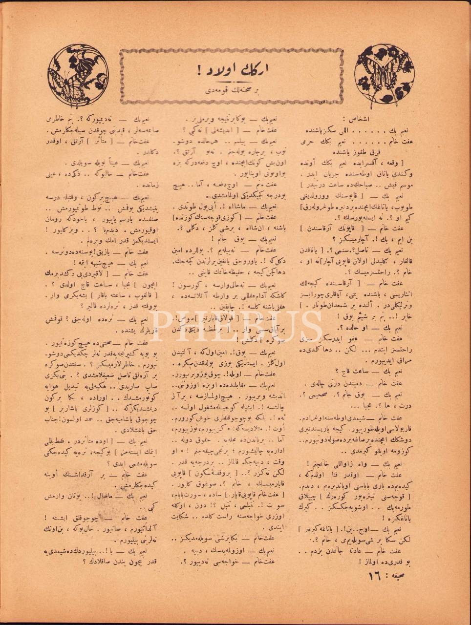 "Şehzadebaşı'nda Ramazan Piyasası", "Alfred de Musset ve Aşk", "Ankara Kurûn-ı Vusta ile Yeni Medeniyetin Kaynaşdığı Bir Şehirdir" vd. başlıklı yazılar ve "Erkek Evlad" başlıklı bir komedi piyesi içermektedir.