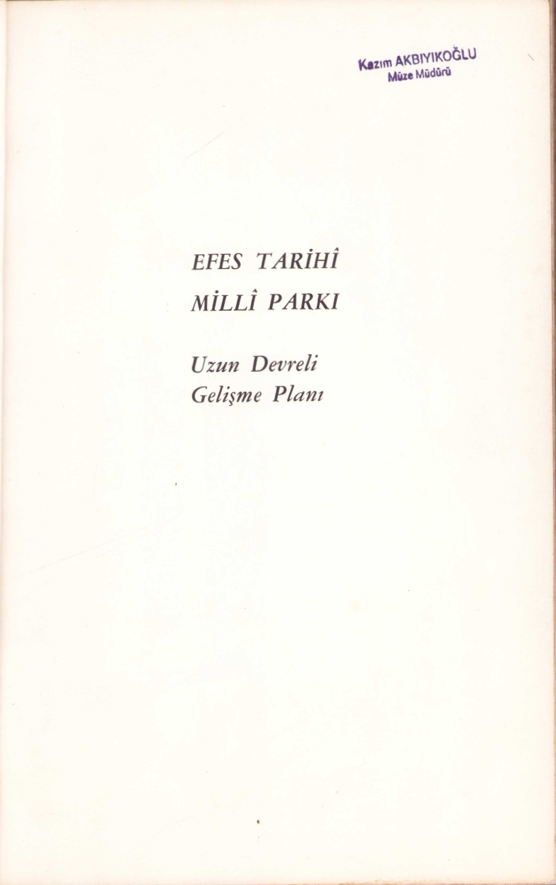 Efes Tarihî Millî Parkı (Uzun Devreli Gelişme Planı), 47 s., 20x30 cm, kapağı yıpranmış haliyle