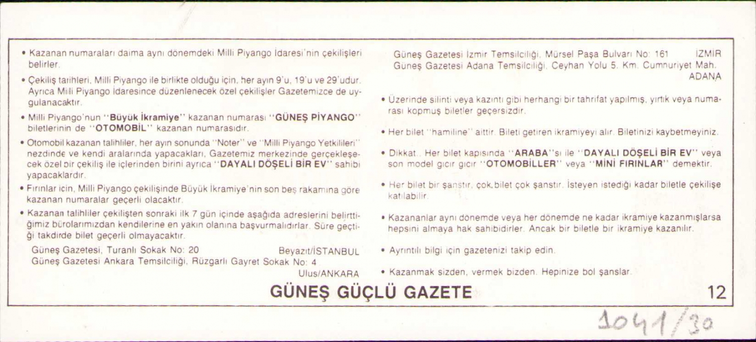Güneş Gazetesi Piyangosu, 19 Kasım 1988