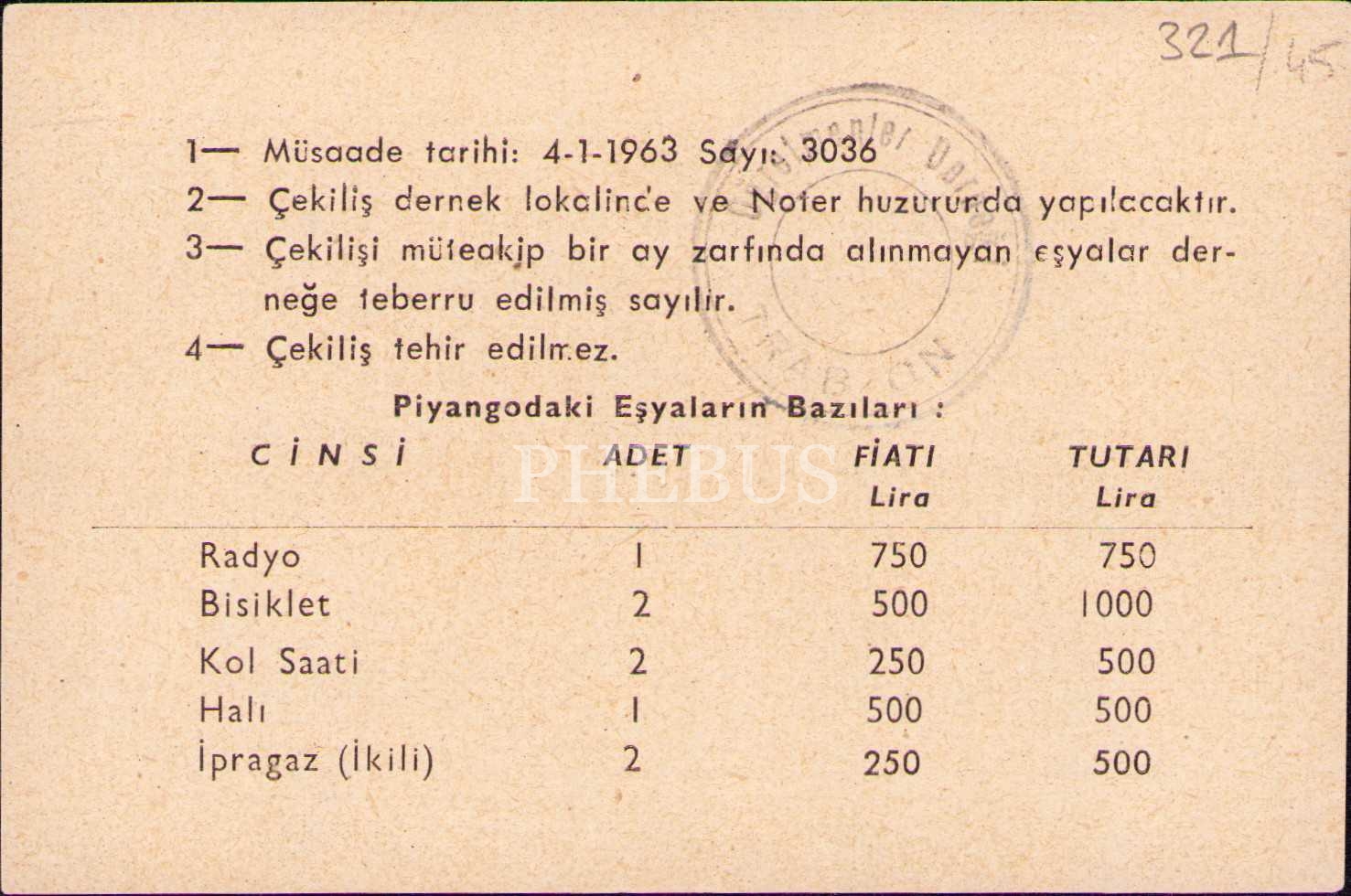 Trabzon Öğretmenler Derneği Eşya Piyangosu, 21 Nisan 1963