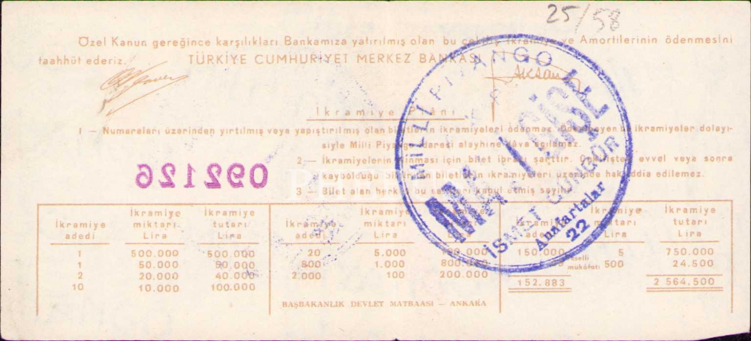 Milli Piyango, 31 Temmuz 1952, Dörtte Bir Bilet, Ç