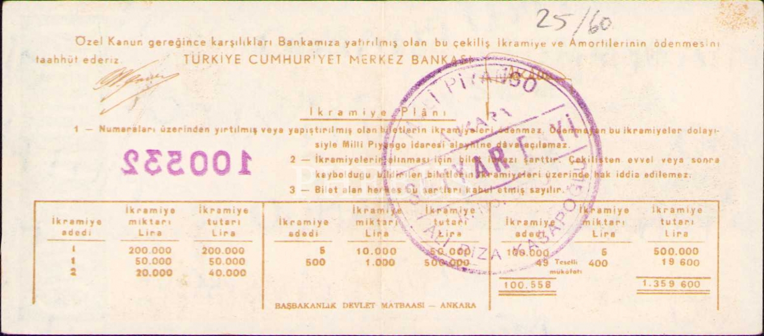 Milli Piyango, 7 Temmuz 1952, Dörtte Bir Bilet, Ç
