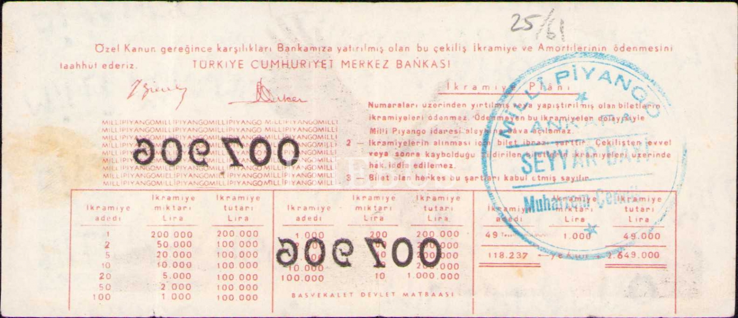 Milli Piyango, 7 Haziran 1956, Dörtte Bir Bilet, Ç