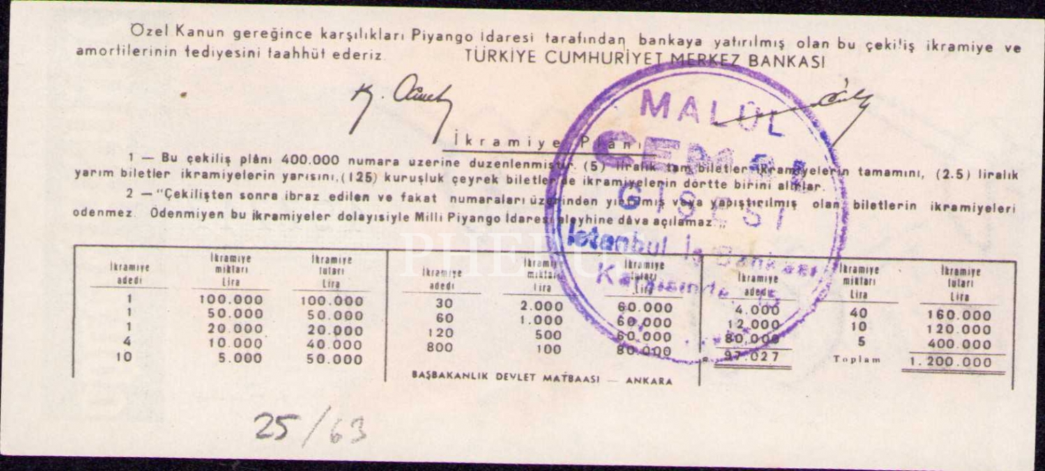 Milli Piyango, 7 Nisan 1949, Dörtte Bir Bilet, Ç