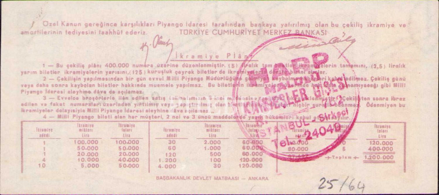Milli Piyango, 7 Aralık 1948, Dörtte Bir Bilet, Ç