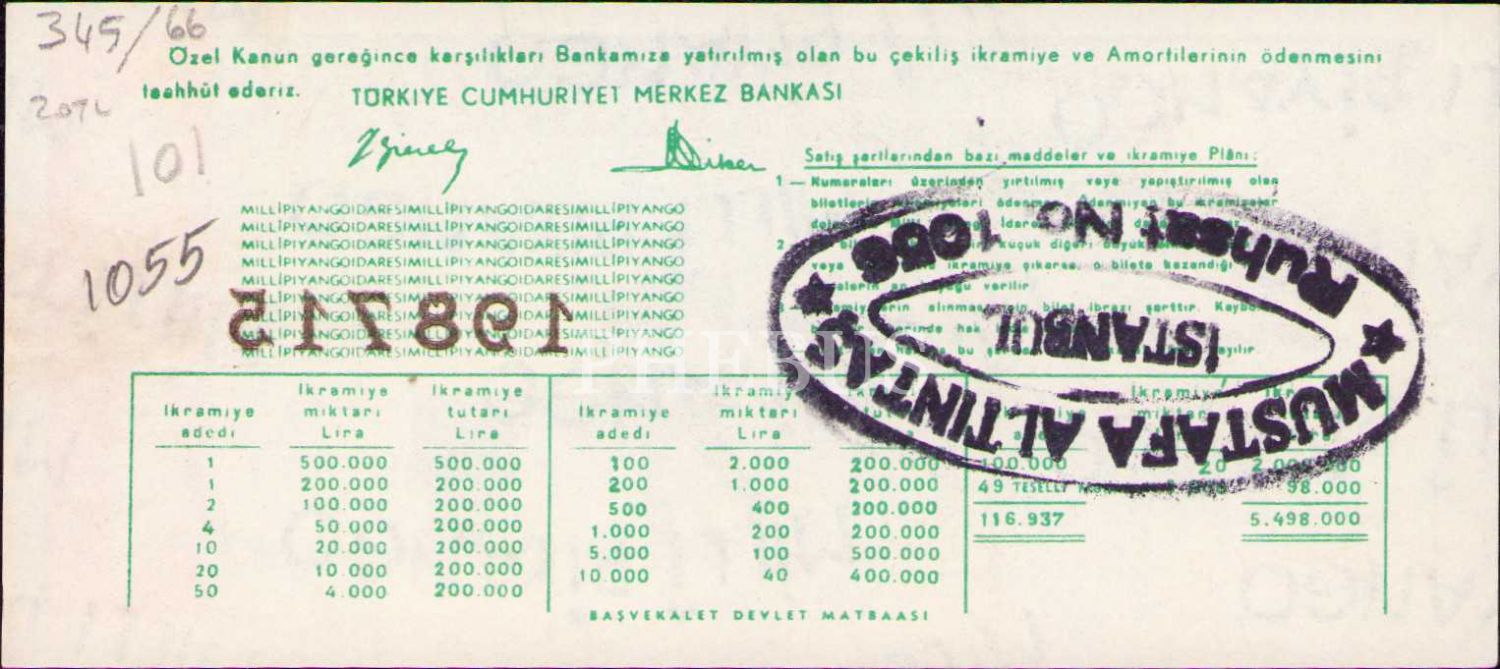 Milli Piyango, 15 Ocak 1958, Yarım Bilet, Y