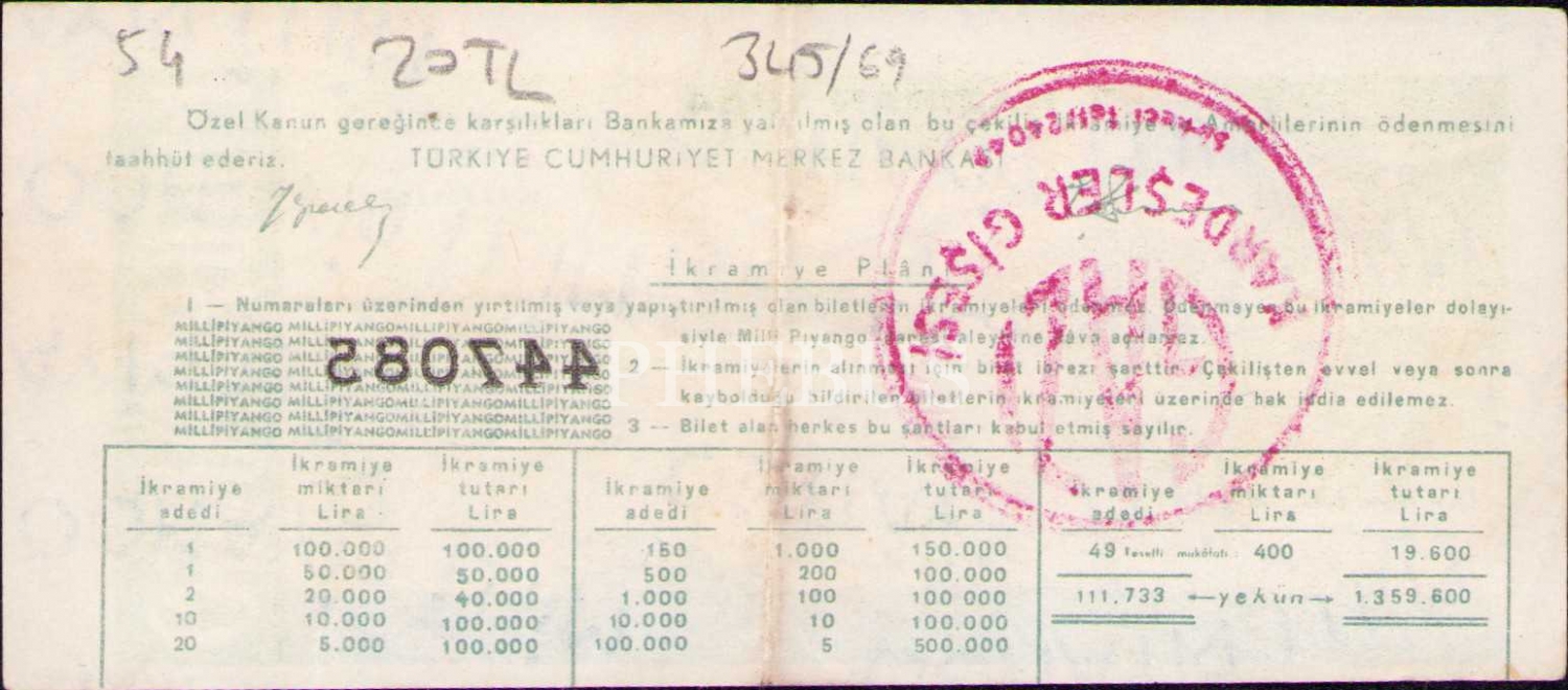 Milli Piyango, 7 Haziran 1954, Dörtte Bir Bilet, D