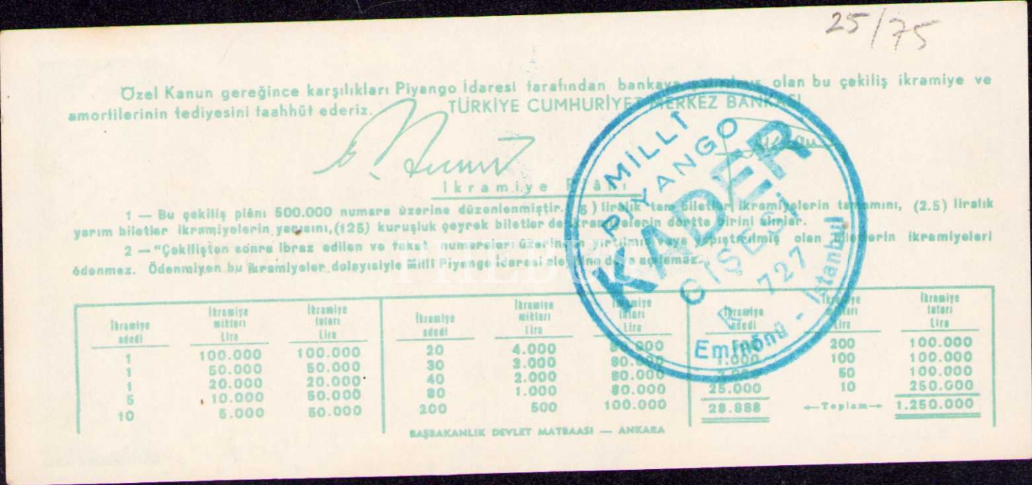 Milli Piyango, 7 Aralık 1949, Dörtte Bir Bilet, D