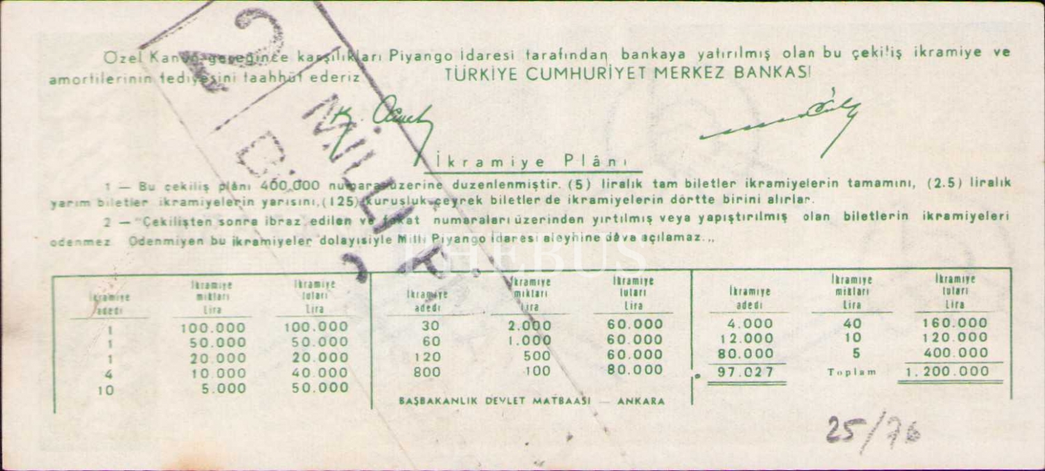 Milli Piyango, 7 Haziran 1949, Dörtte Bir Bilet, Ç