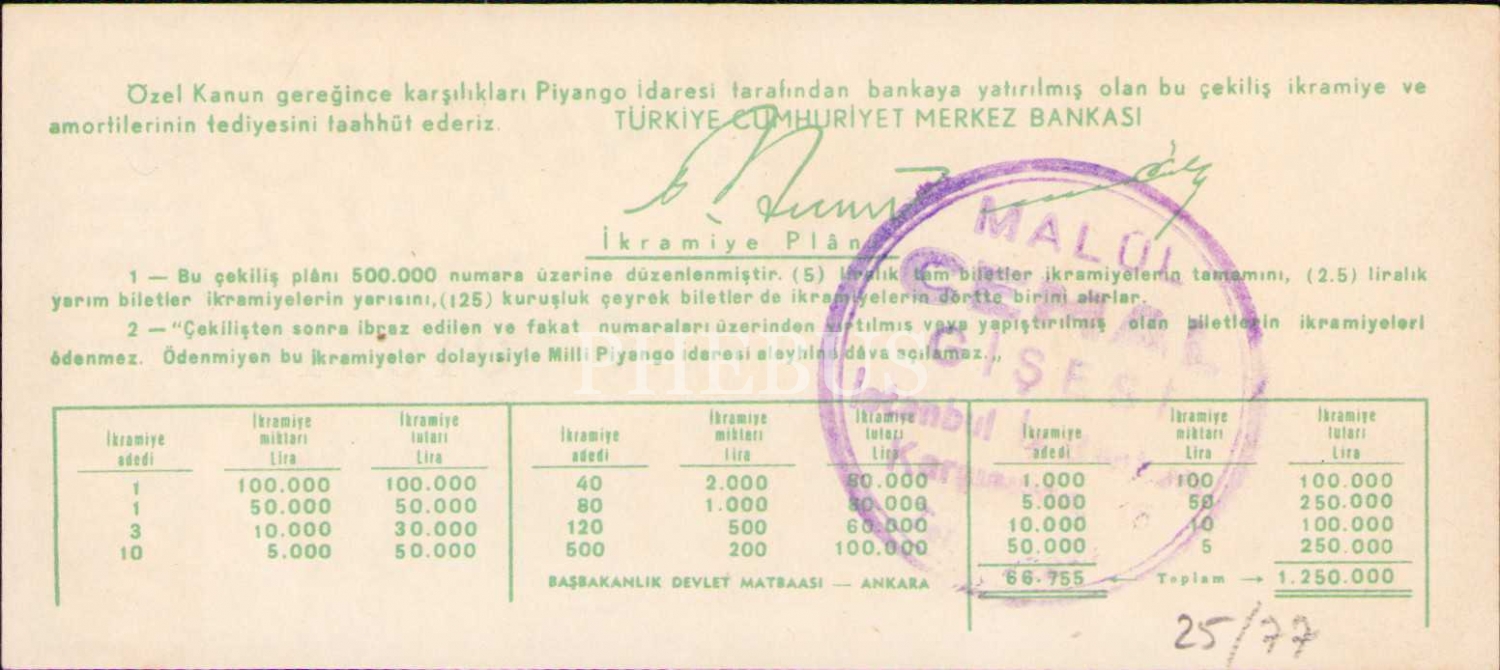 Milli Piyango, 15 Eylül 1949, Dörtte Bir Bilet, Ç