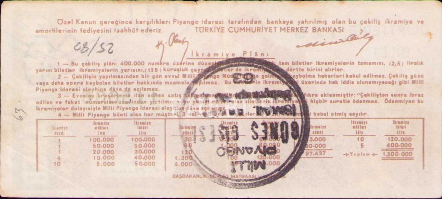 Milli Piyango, 7 Ekim 1948, Dörtte Bir Bilet, Ç