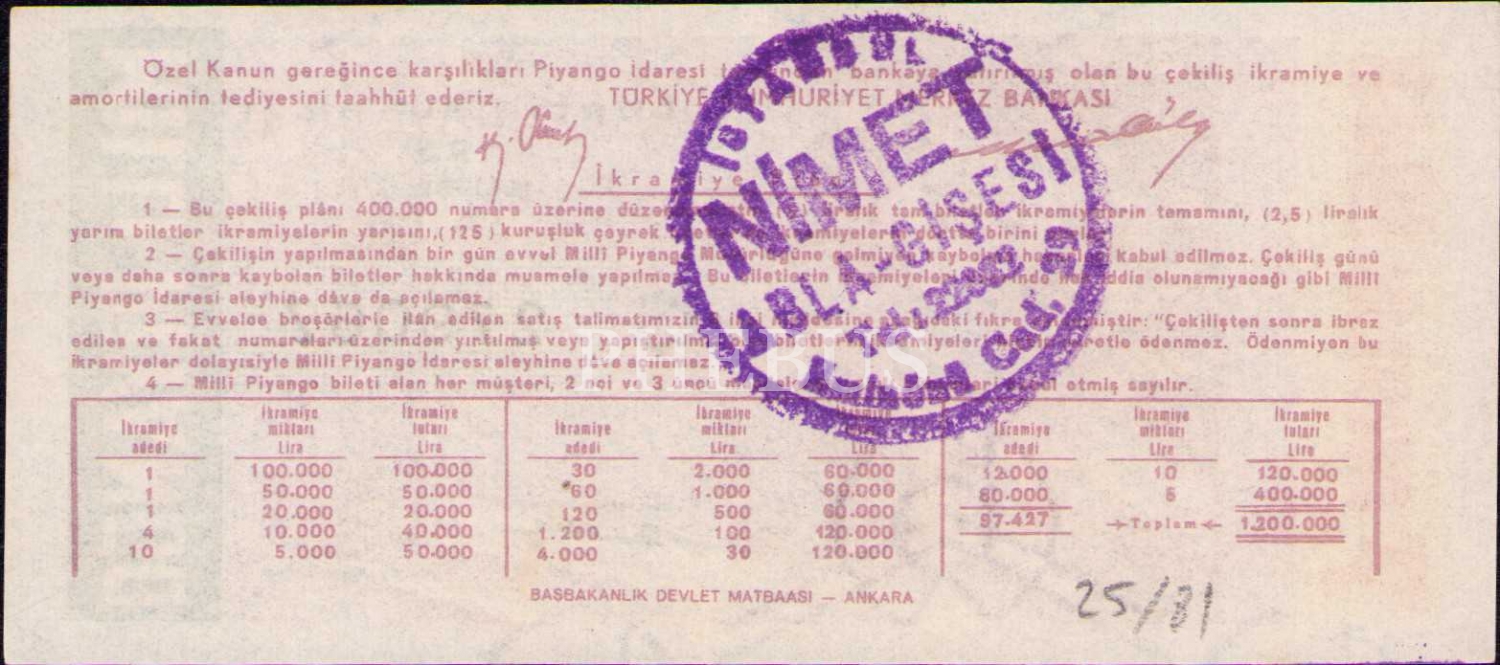 Milli Piyango, 7 Aralık 1948, Dörtte Bir Bilet, Ç