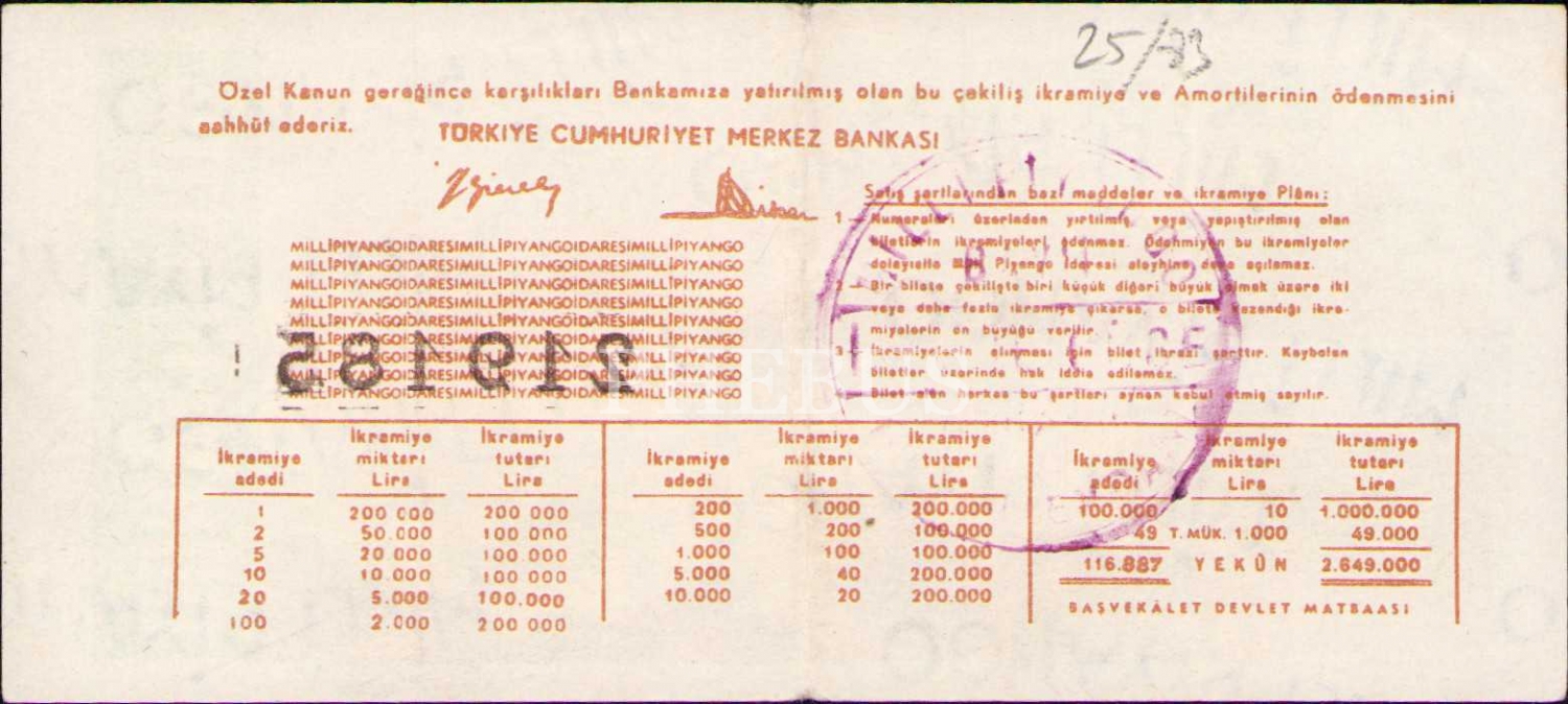 Milli Piyango, 7 Ekim 1957, Dörtte Bir Bilet, Ç