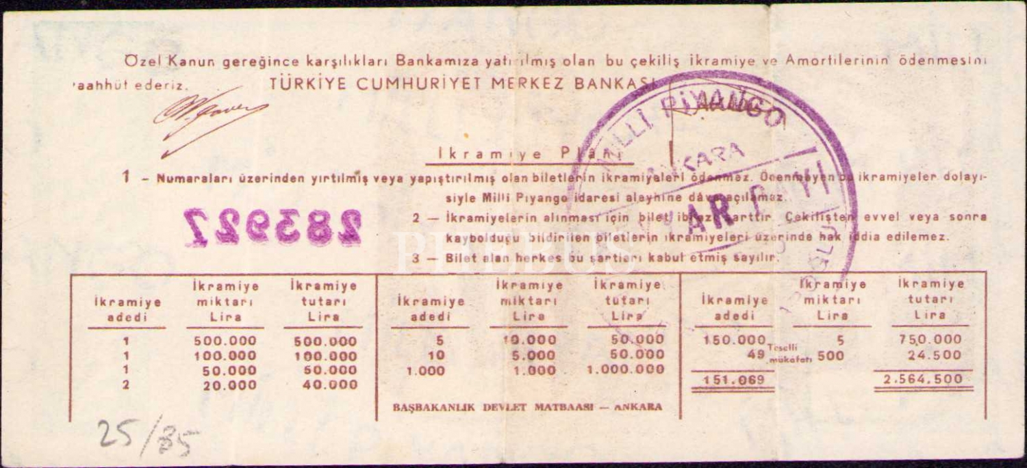 Milli Piyango, 19 Mayıs 1952, Dörtte Bir Bilet, Ç