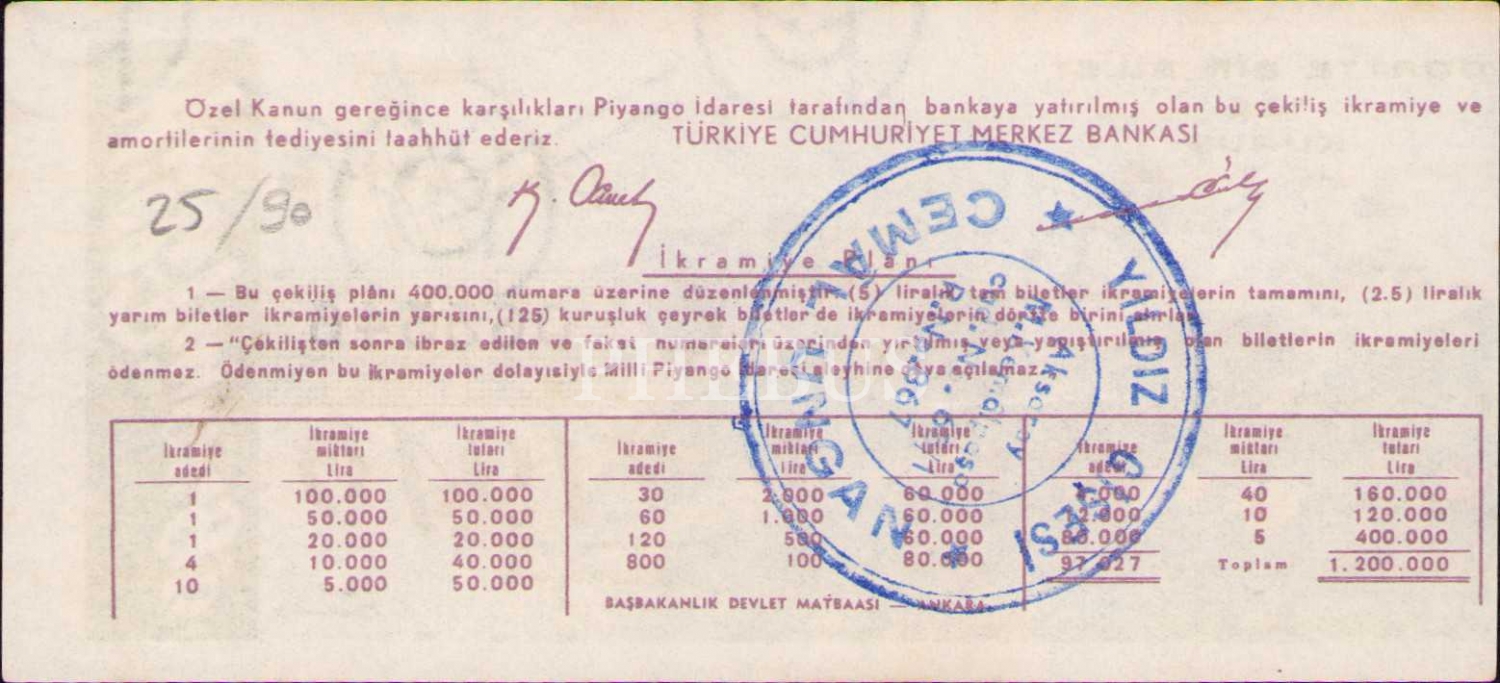 Milli Piyango, 7 Mayıs 1949, Dörtte Bir Bilet, Ç