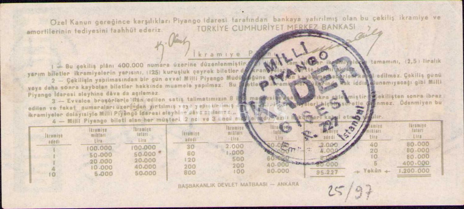 Milli Piyango, 7 Şubat 1948, Dörtte Bir Bilet, Ç