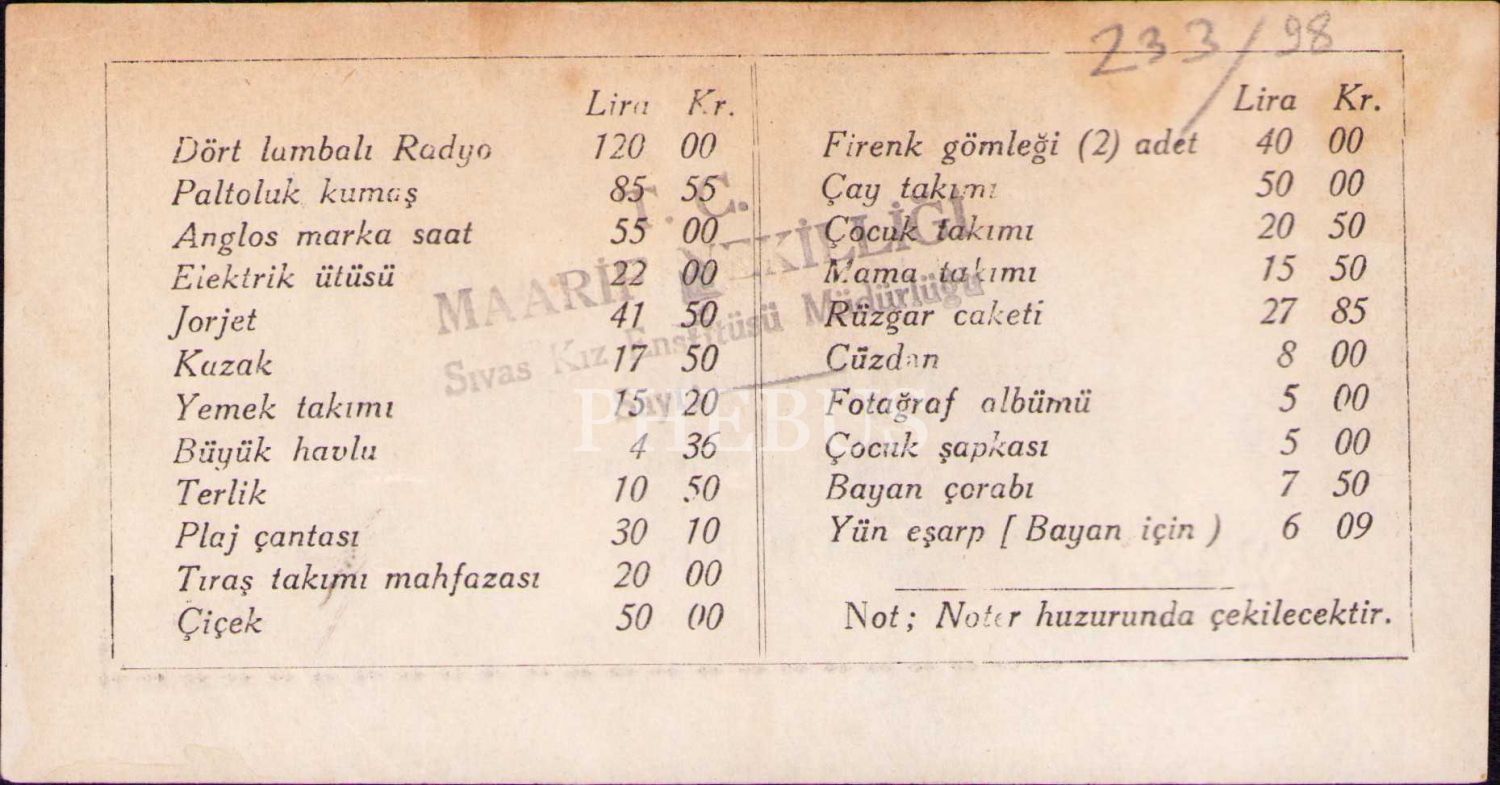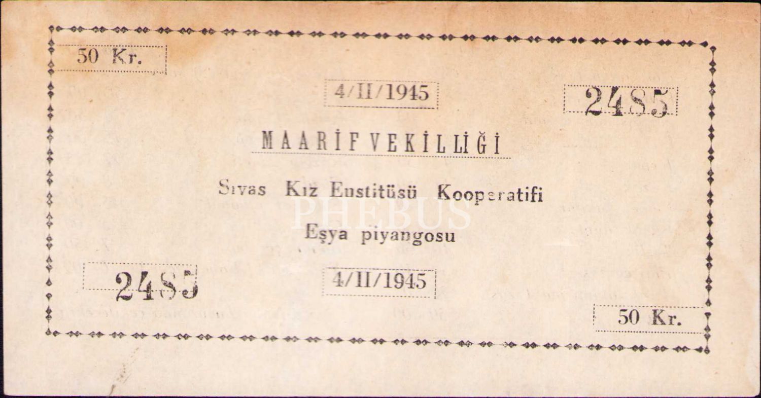 Maarif Vekilliği Sivas Kız Enstitüsü Kooperatifi Eşya Piyangosu, 4/II/1945