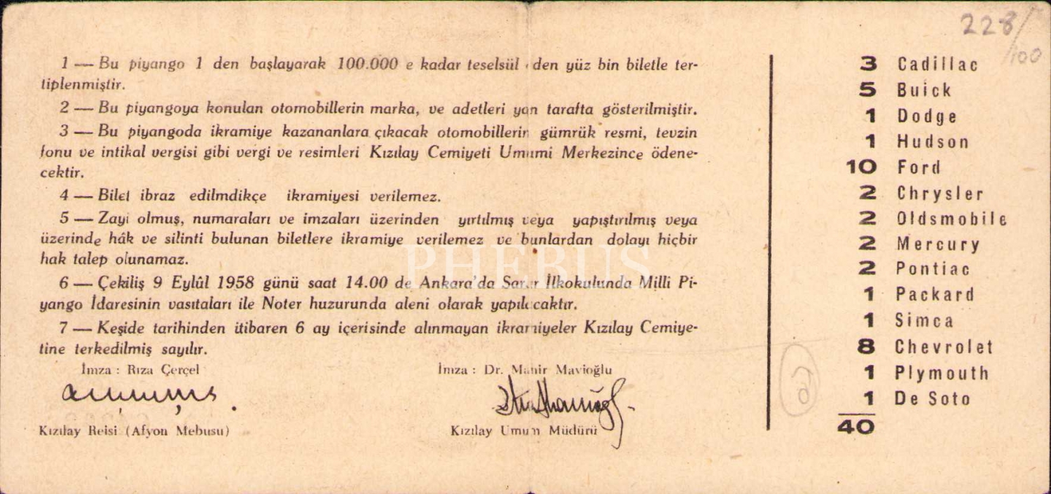 Türkiye Kızılay Cemiyeti Otomobil Piyangosu, 9 Eylül 958
