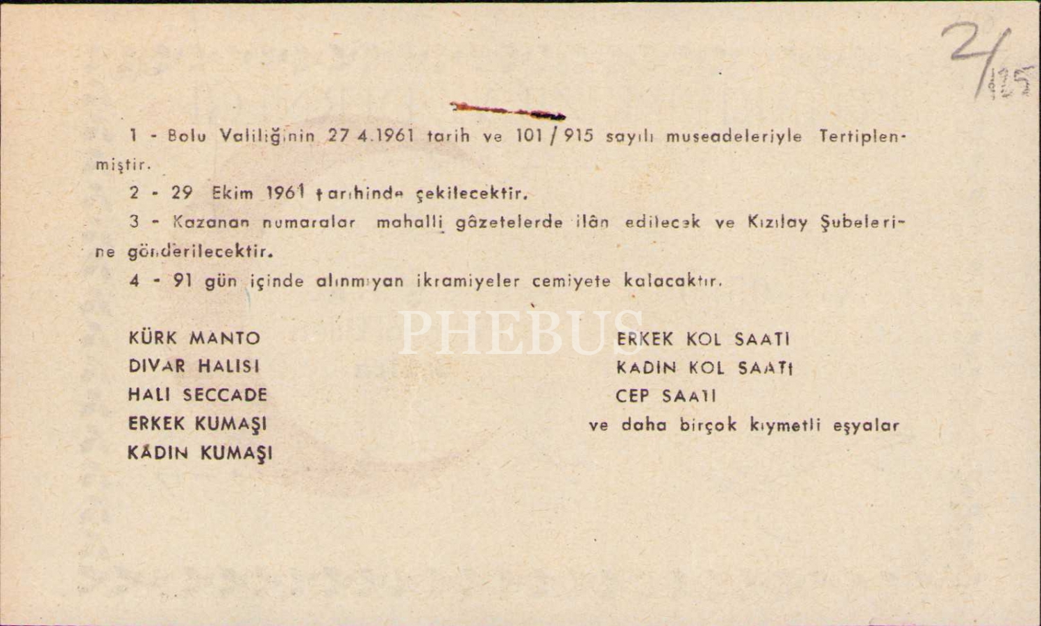 Türkiye Kızılay Derneği Bolu Şubesi Eşya Piyangosu, 29 Ekim 1961