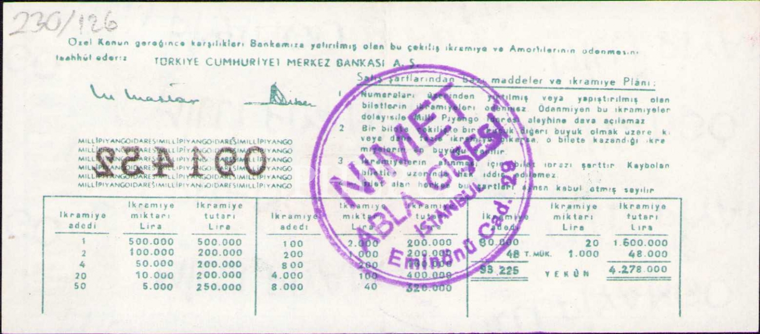 Milli Piyango, 7 Haziran 1961, Dörtte Bir Bilet, Ç