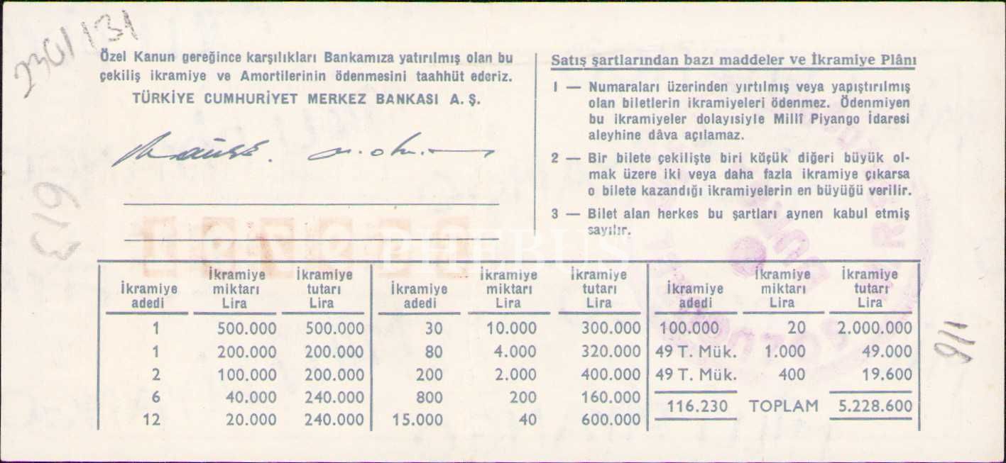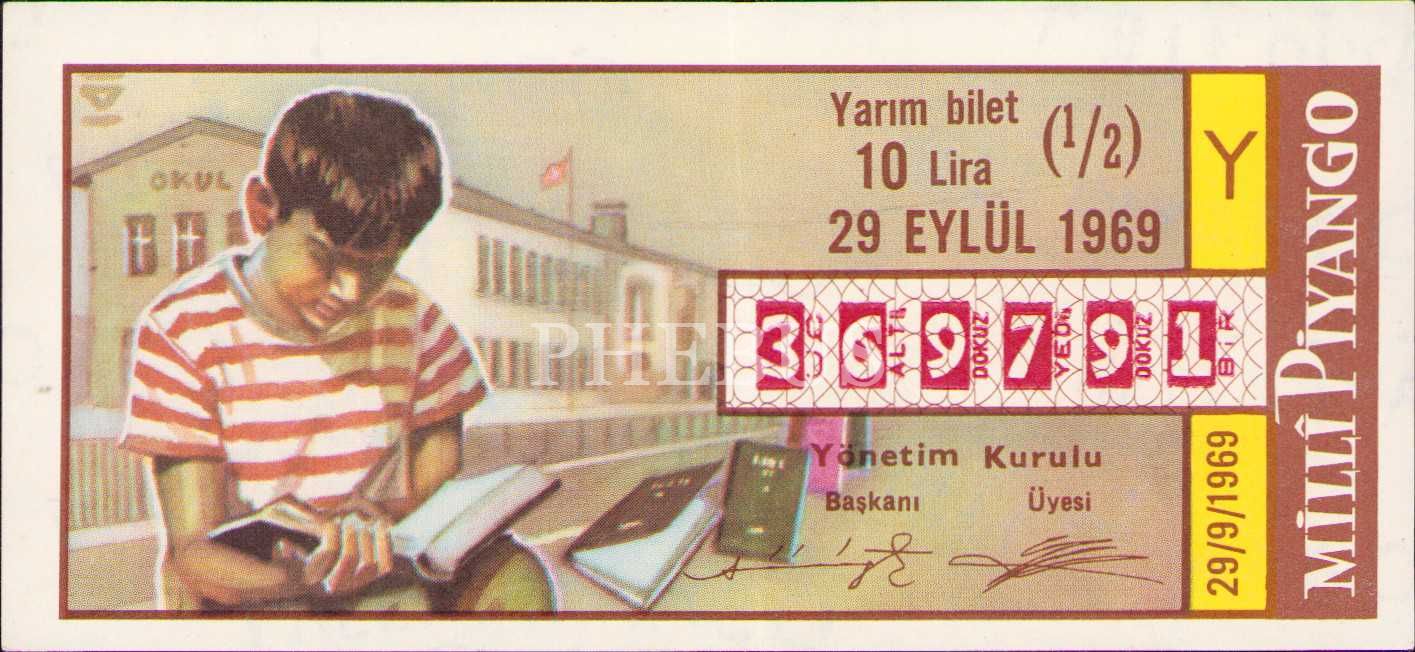 Milli Piyango, 29 Eylül 1969, Yarım Bilet, Y