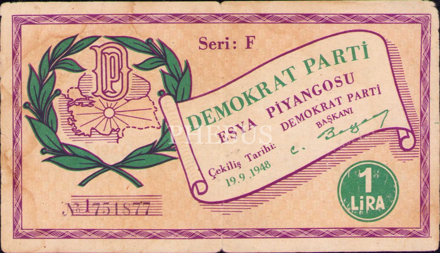 Demokrat Parti Eşya Piyangosu, 19.9.1948, Seri F
