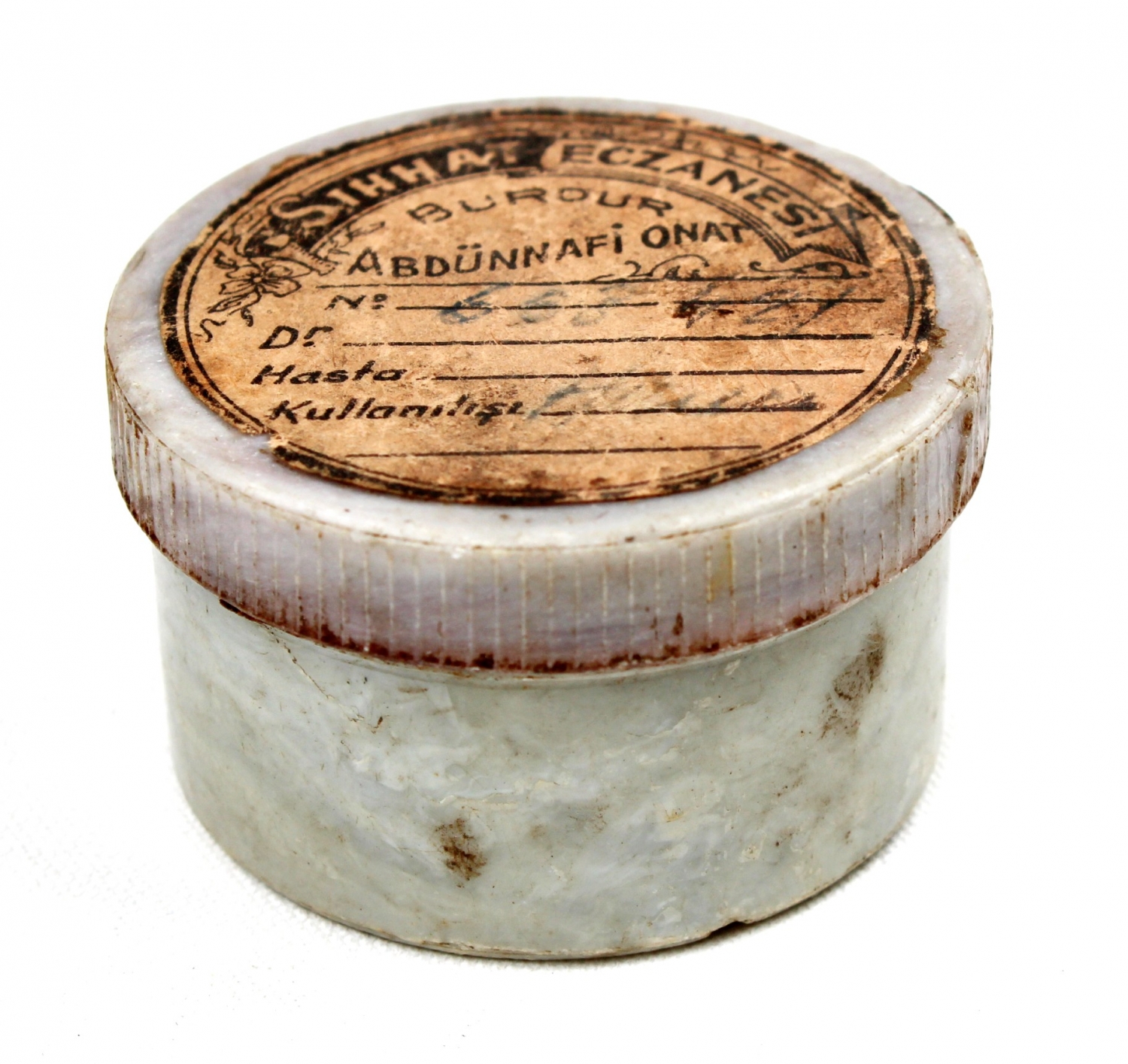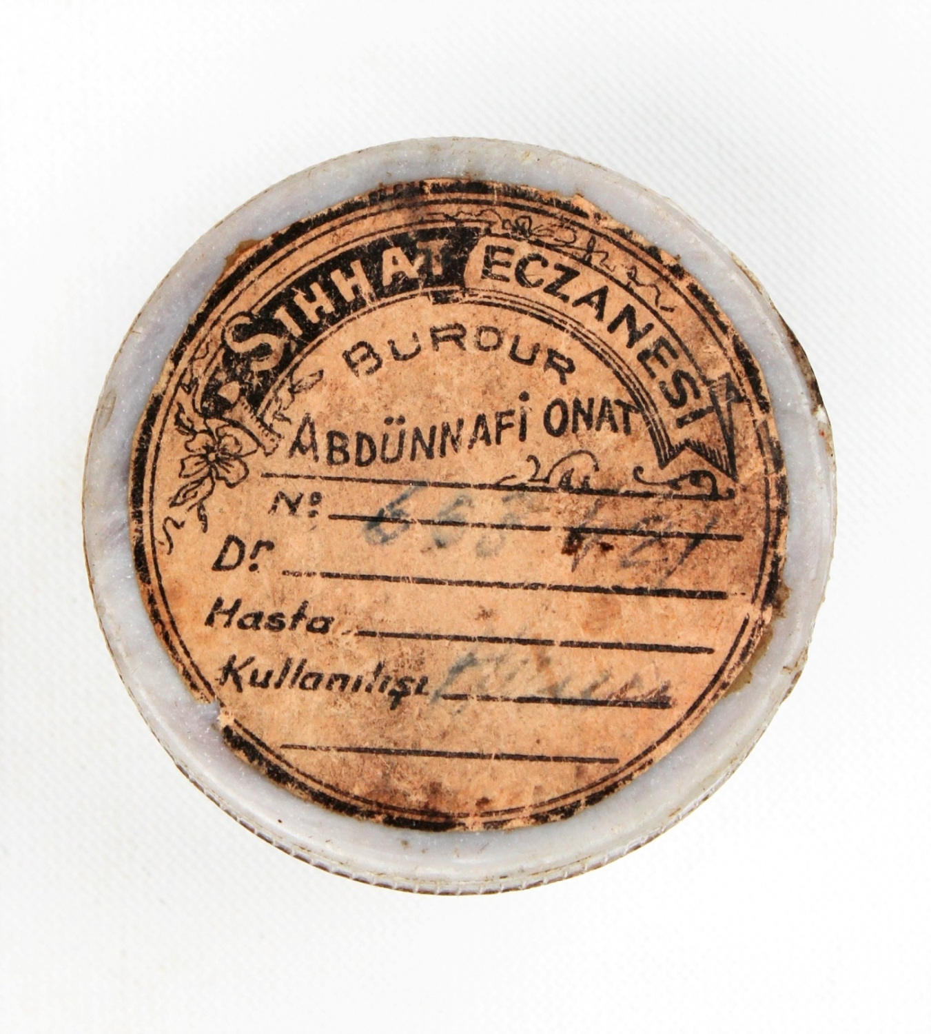 Burdur Sıhhat Eczanesi, Abdünnafi Onat etiketli krem kutusu, içi dolu, 5x3cm