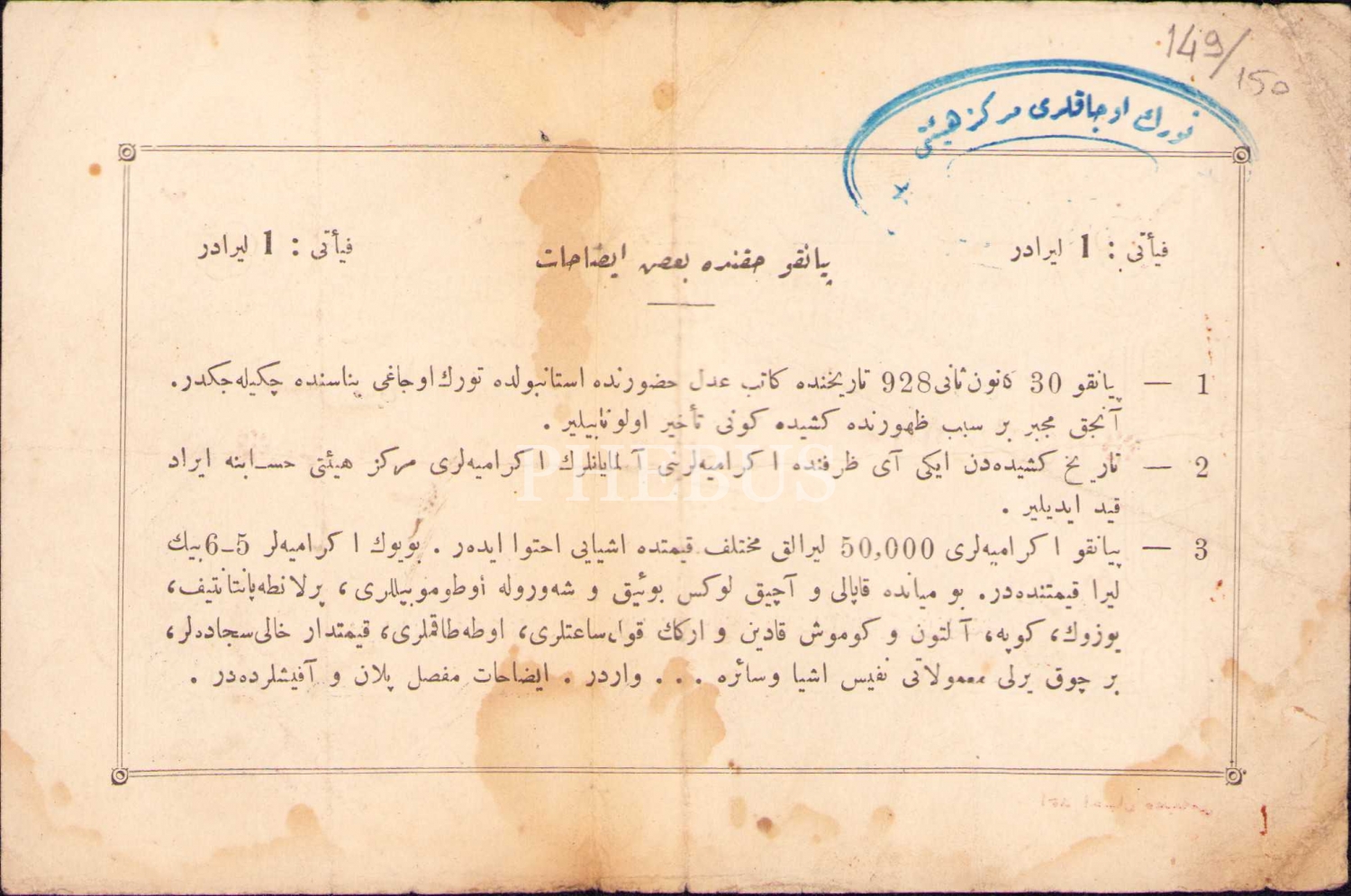 Osmanlıca Türk Ocakları Merkez Heyeti Eşya Piyangosu, 1928