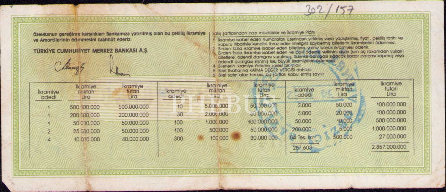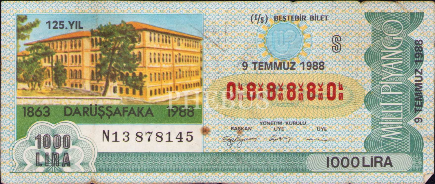 Milli Piyango, 9 Temmuz 1988, 1/5 Bilet, S
