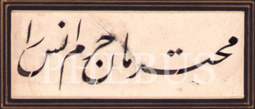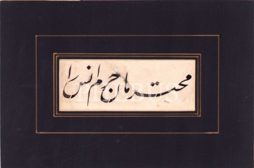 Farsça Ta'lik yazı, Hattat Halim Özyazıcı terekesinden, paspartulu, 11x4 cm.