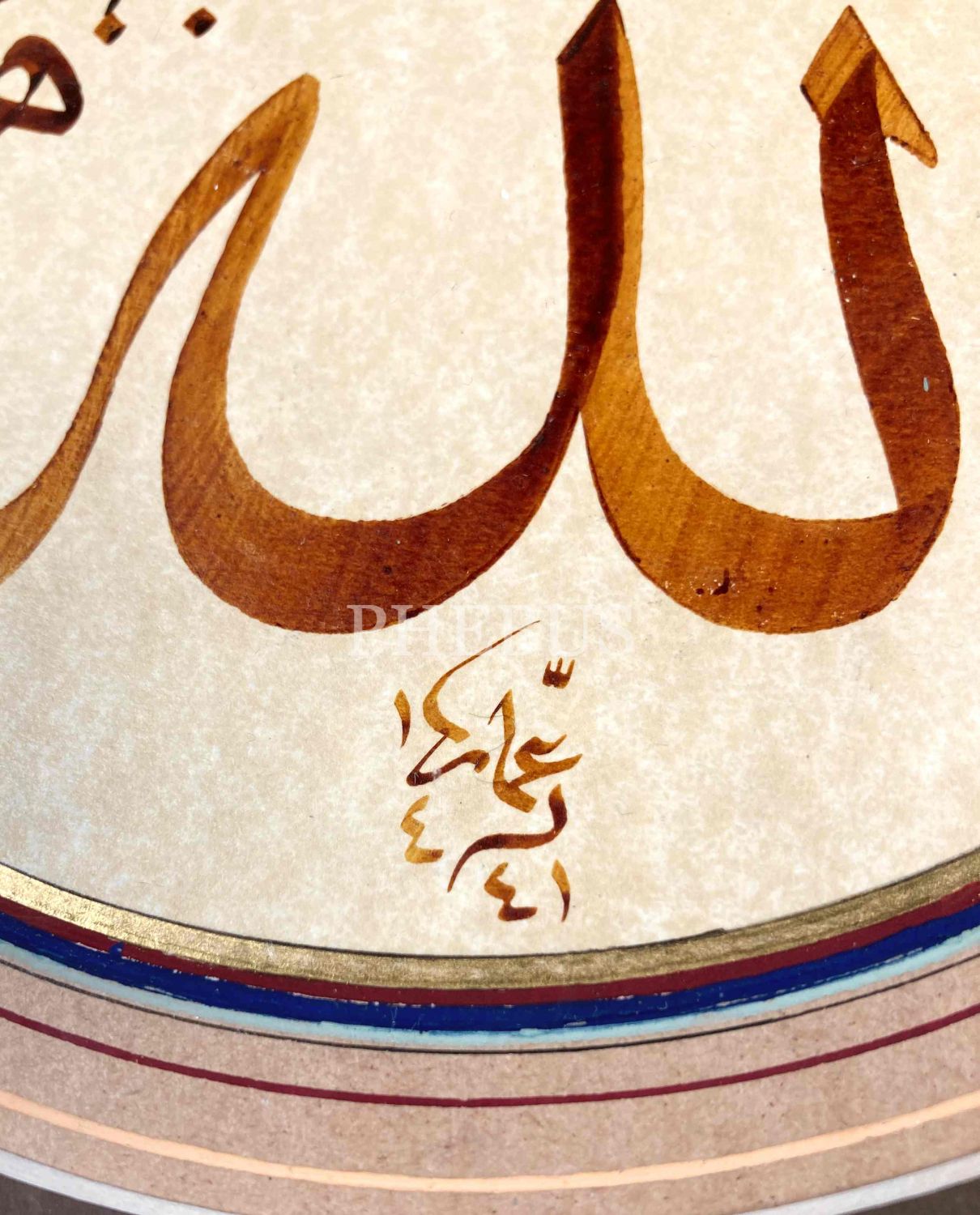 Celî Sülüs Lafzatullah, Osman ketebeli, 1441 tarihli, çapı 15 cm
