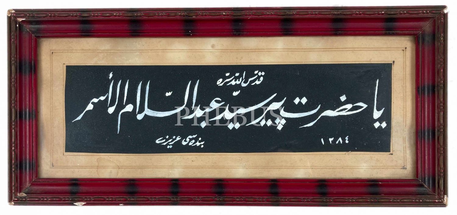 Cam Altı Ta'lik Yazı, "Ya Hazret-i Pir Seyyid Abdü's-selâm", bendesi Aziz ketebeli, 27x7 cm
