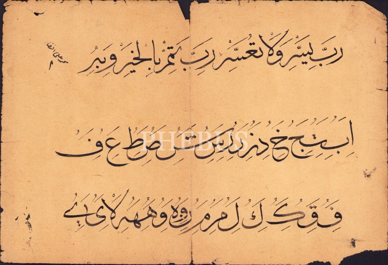 Sülüs "Rabbi Yessir" ve Hurûfât Meşki, haliyle, 24,5x17 cm.