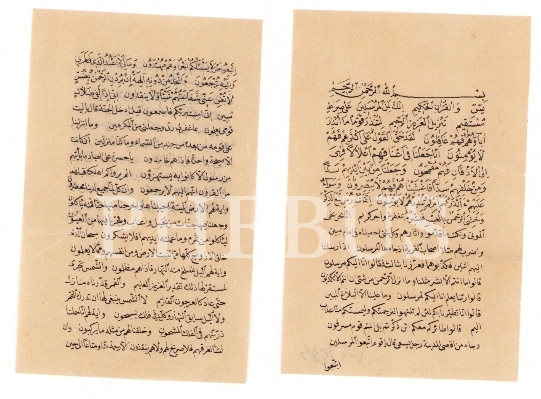 Gubarî Yazı, Yâsin Sûresi'nden Ayet-i Kerimeler, iki varak, 7x12 cm