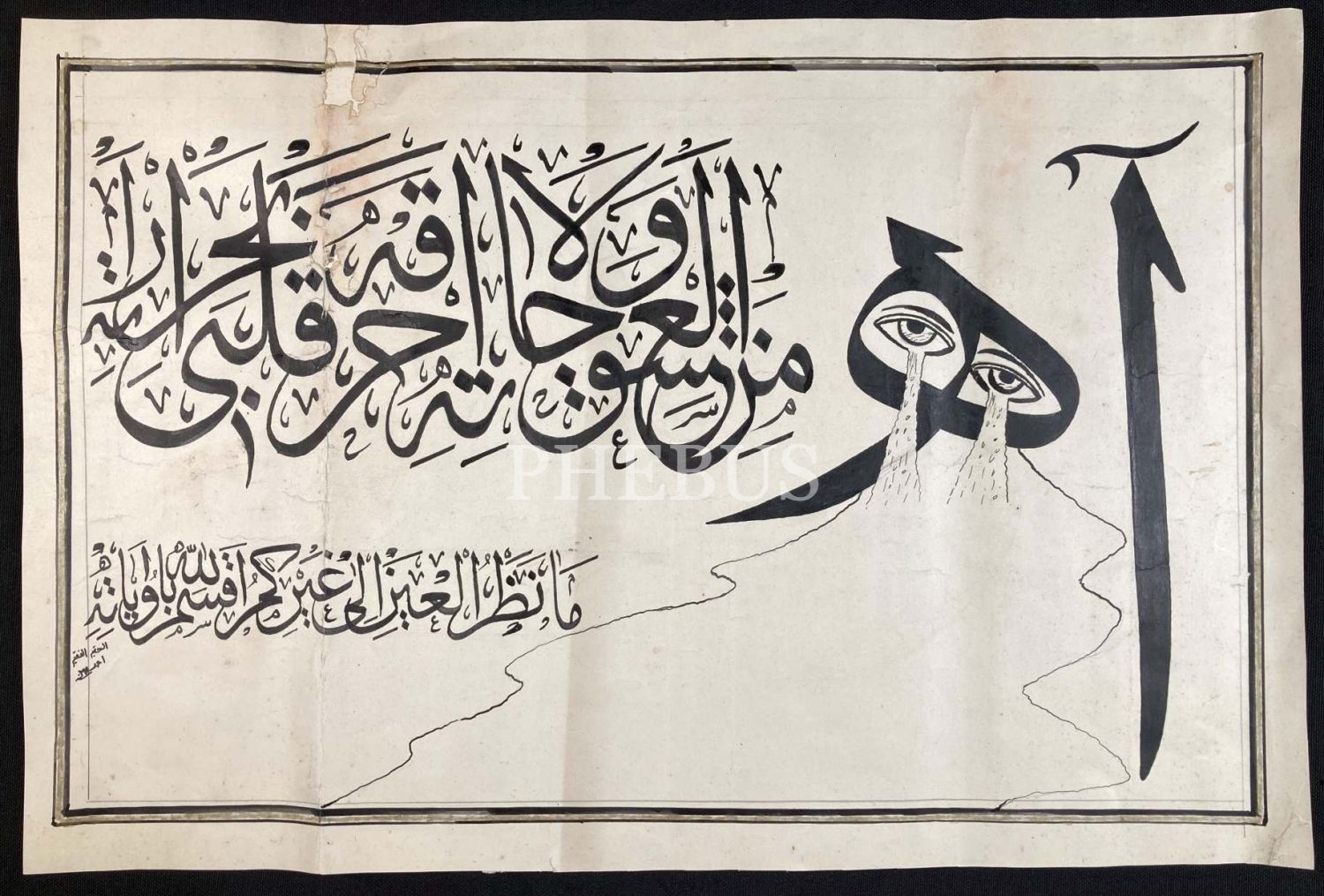 Celî Sülüs Yazı, "Ah mine'l-aşk ve hâlâtihî", Ahmed ketebeli, 1371 tarihli, 44x30 cm